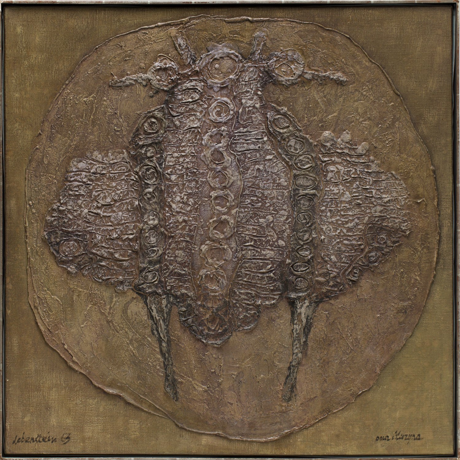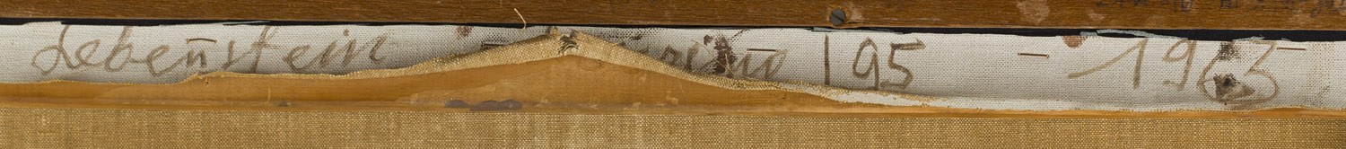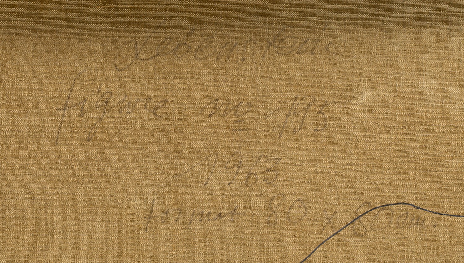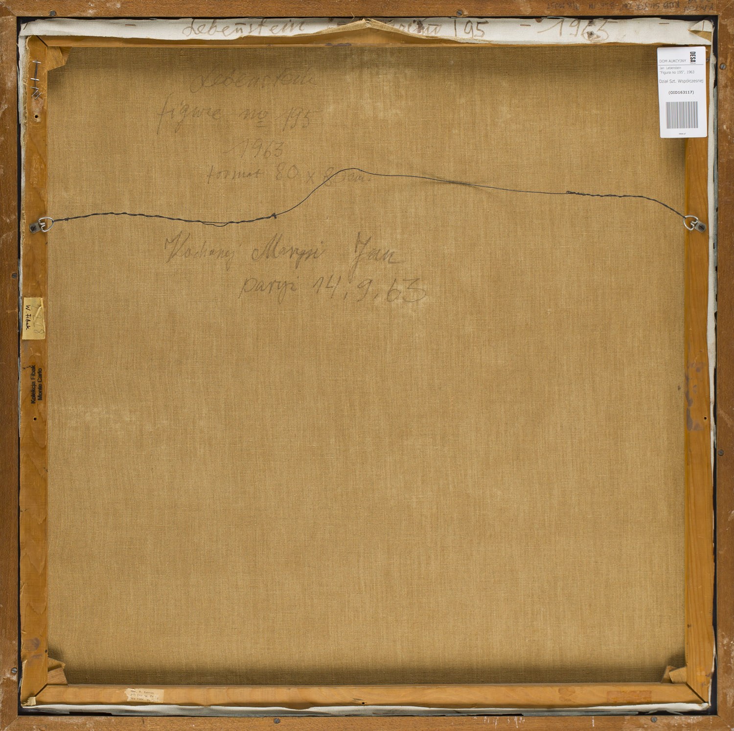 sygnowany, datowany i opisany na odwrociu: 'Lebenstein | figure no 195 | 1963 |format 80x80 cm | Kochanej Marysi Jan | Paryż 14.9.63'