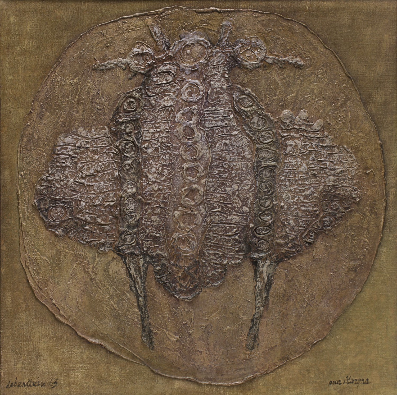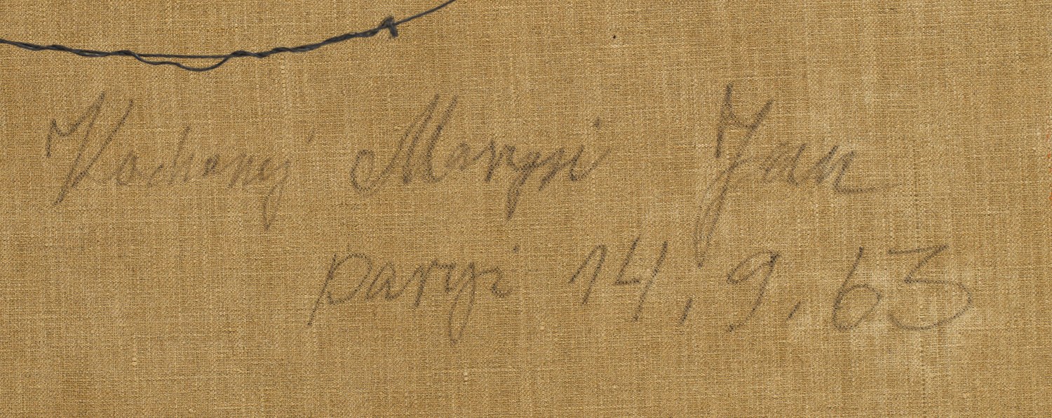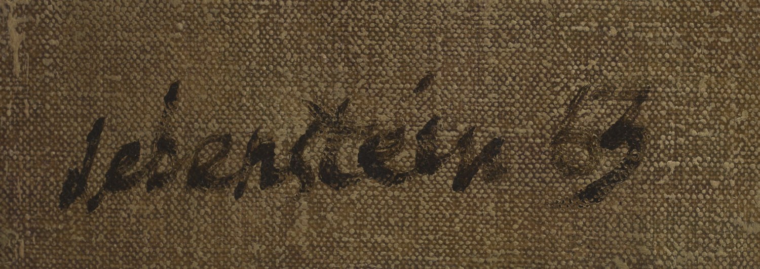 sygnowany, datowany i opisany na odwrociu: 'Lebenstein | figure no 195 | 1963 |format 80x80 cm | Kochanej Marysi Jan | Paryż 14.9.63'