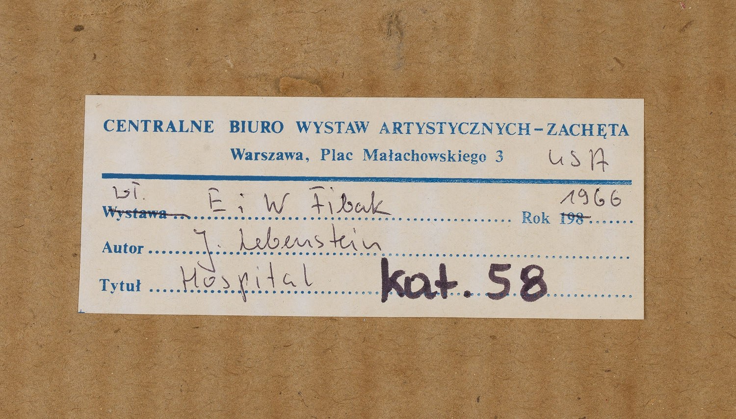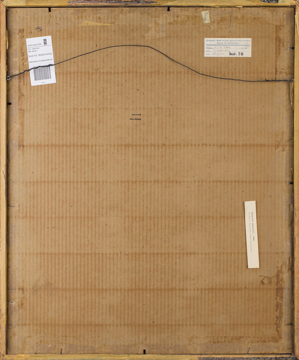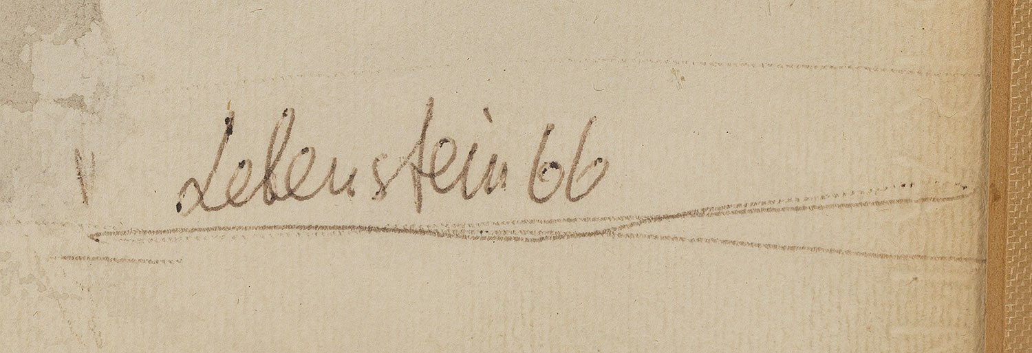 sygnowany i datowany p.d.: 'Lebenstein 66'; na odwrociu naklejka z Centralnego Biura Wystaw Artystycznych "Zachęta", naklejka z opisem pracy oraz stempel 'Kolekcja Fibak, Monte Carlo'