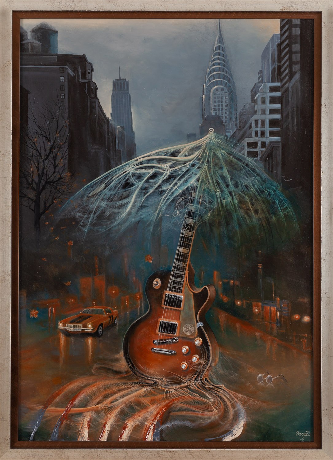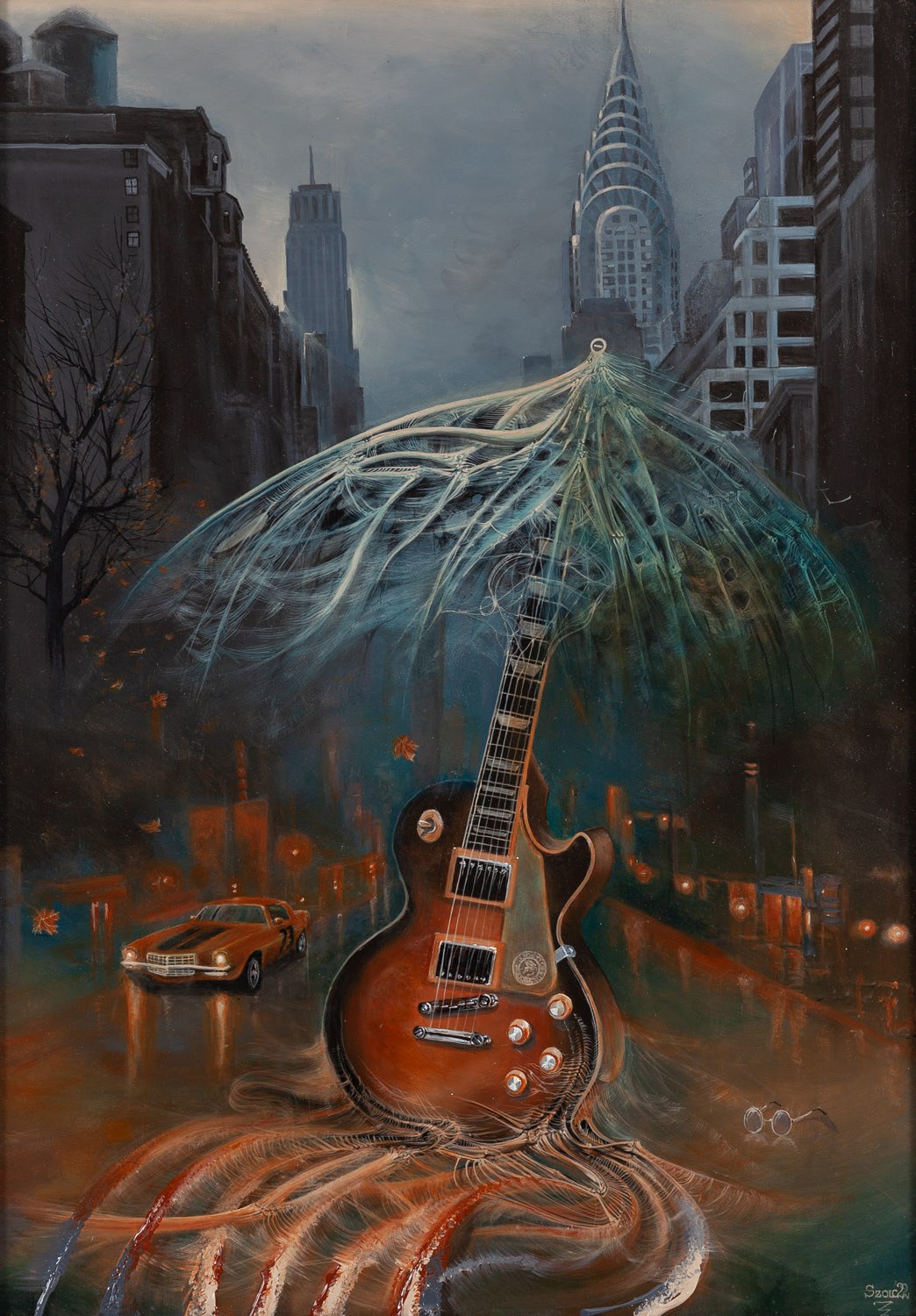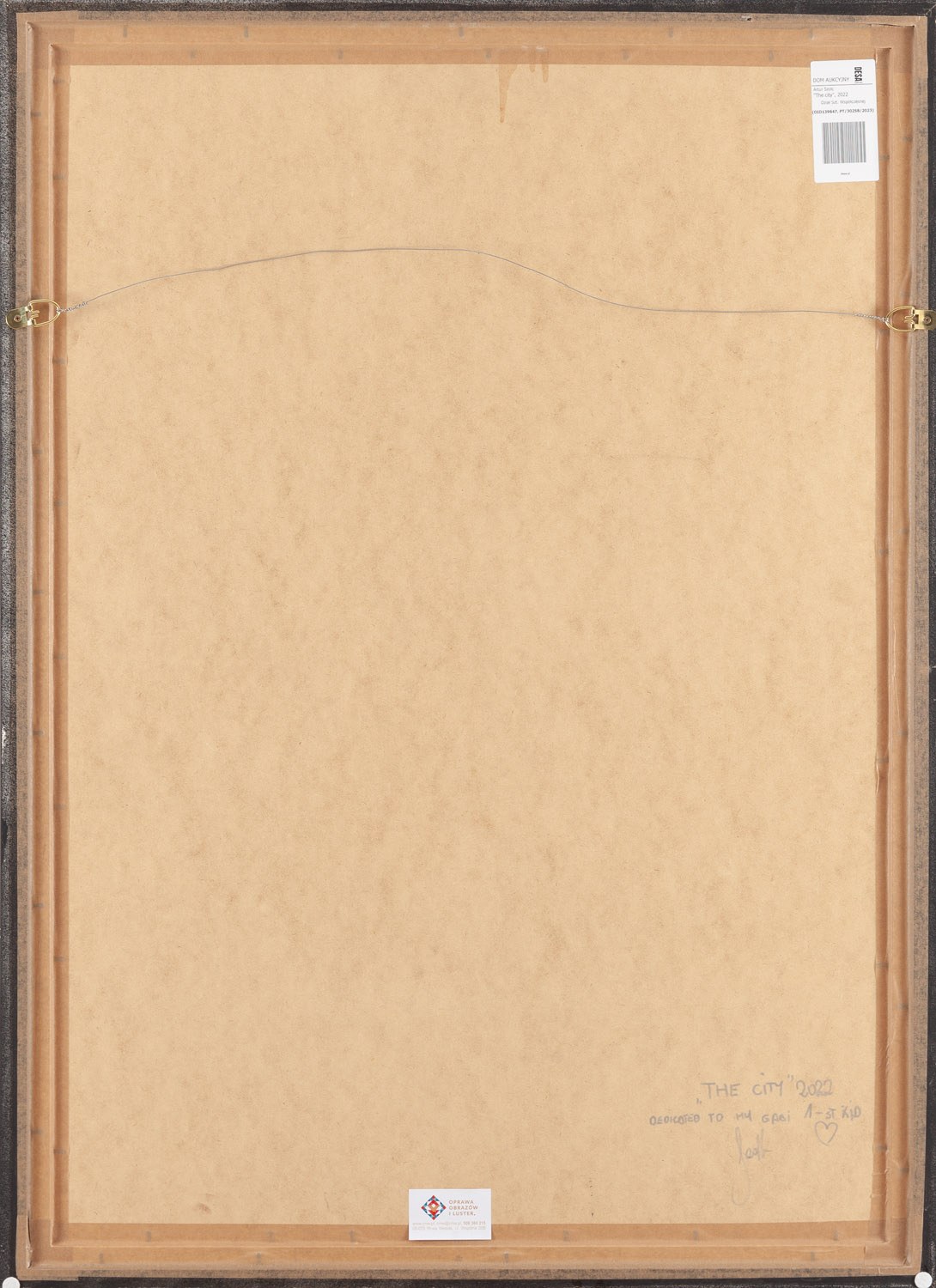 sygnowany, datowany i opisany na odwrociu: '"THE CITY" 2022 | DEDICATED TO MY GABI 1-ST KID | [sygnatura artysty] [serce]'