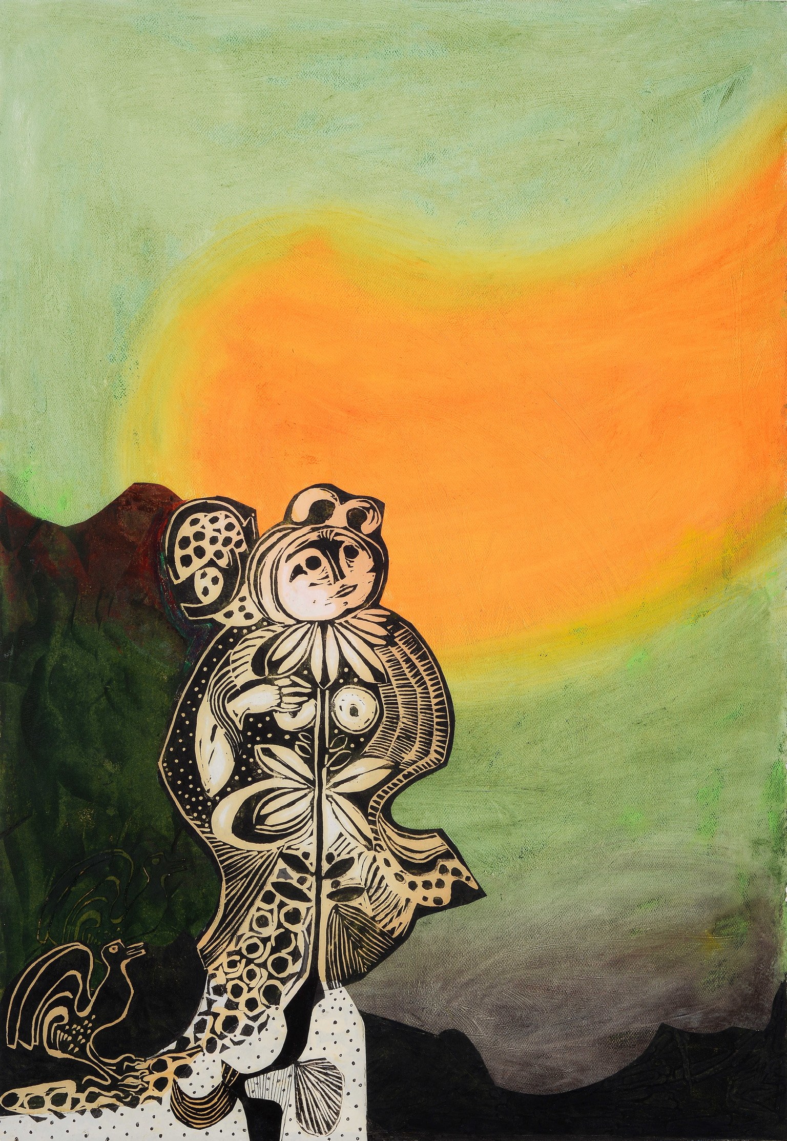 Kolaż z elementami grafiki, olej technika autorska, papier; 100 x 70 cm