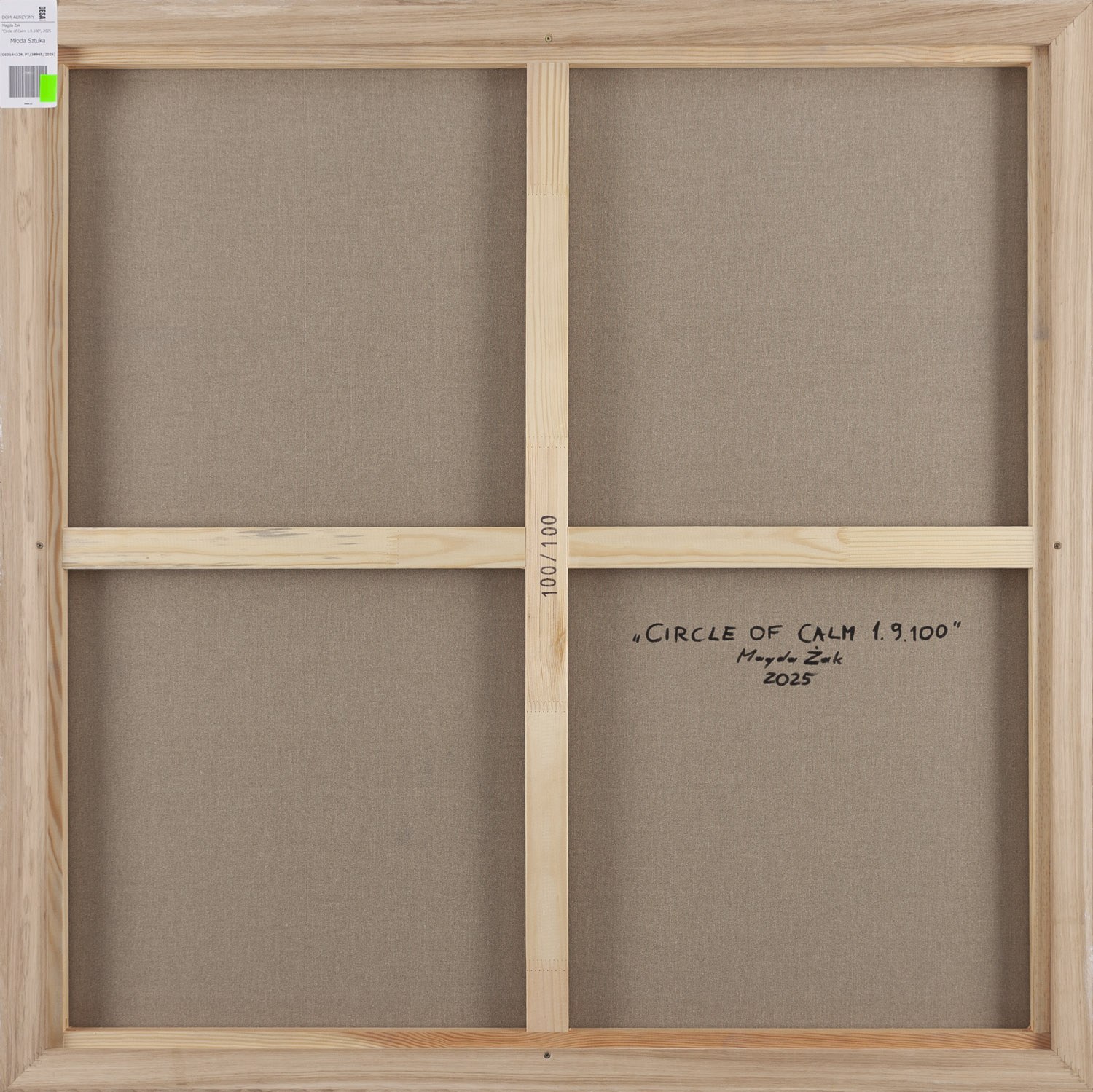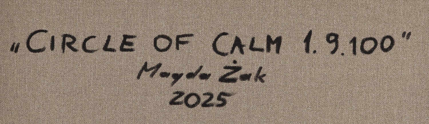 sygnowany, datowany i opisany na odwrociu: ' "Circle of Calm 1.9.100" | Magda Żak | 2025'