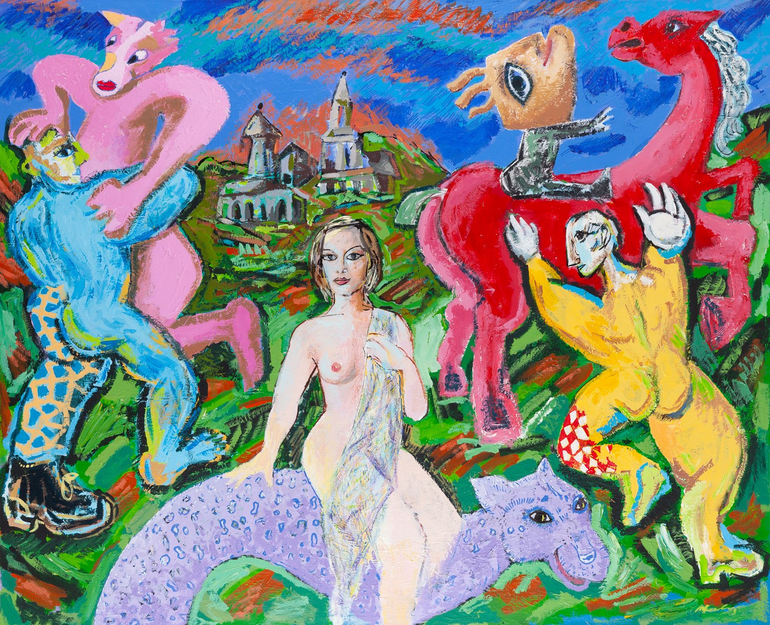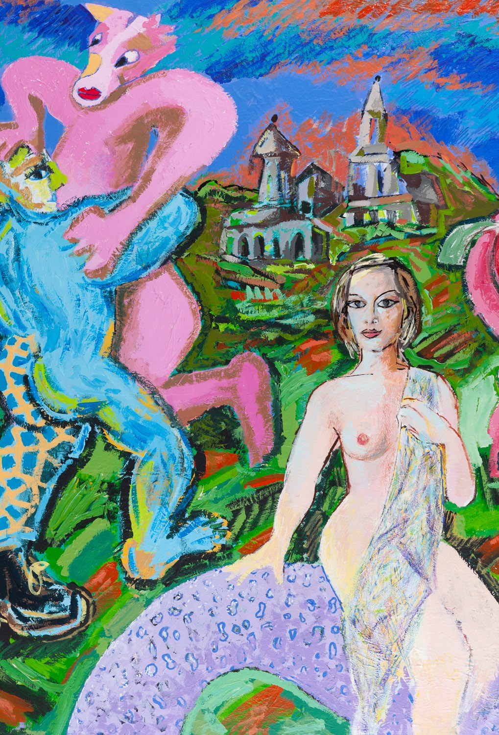 Marek Kamieński (ur. 1953) Malarz, rysownik, autor filmów, instalacji i performance, jeden z głównych przedstawicieli malarstwa „nowej ekspresji” lat 80, wokalista i producent zespołu Zilch (Jarocin 1984-1985), urodził się w Katowicach. W latach 1972-1979 studiował w tamtejszej filii krakowskiej ASP na Wydziale Grafiki, po czym włączył się w nurt sztuki lat 80, ze swoim podszytym ironią i mocno epatującym erotyką wielkoformatowym malarstwem połączonym z fotografią. Pierwsza indywidualna wystawa artysty miała miejsce w 1983 roku w katowickim BWA. Wykorzystując zdjęcia z pism ilustrowanych i pornograficznych, łączył popartowską stylistykę z wręcz “dziko” nakładaną na płótno farbą (Motorhead, 1982). Nie stronił również od żartobliwych, fantastycznych wizji, jak choćby silnie naładowanych ekspresją, monstrualnie powiększonych pluszowych zabawek, cytatów z obrazów Jana Matejki czy fantazyjnych stworzeń (Dinozaury, 1985). Od tego czasu gromadzi i łączy motywy dowolnie, mieszając elementy kultury wysokiej i plebejskiej z ikonami europejskiej sztuki. Pod koniec lat 80 odchodzi od „dzikiego” malarstwa na rzecz postmodernistycznej zabawy z różnymi konwencjami. Nawiązuje do stylistyki futurystycznej (Sokrates tańczący, Śniadanie na trawie, 1991), a w następnych latach do klasyki malarstwa trawestując i cytując, mieszając i parafrazując różne znane wątki malarskie. Narracyjny, wieloaspektowy i wieloplanowy sposób kreacji motywów na płótnie kontynuuje do dziś. Jego obecne prace (Vincent i Paul idą na motyw, 2009), solidnie dopracowane, wręcz dekoracyjne, emanują feerią ostrych barw, płasko konstruowaną przestrzenią obrazu, zagęszczoną narracją ale też niekonwencjonalnymi zbitkami myślowymi, niestroniącymi od pastiszu.
