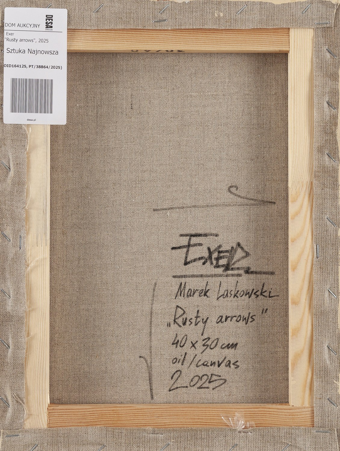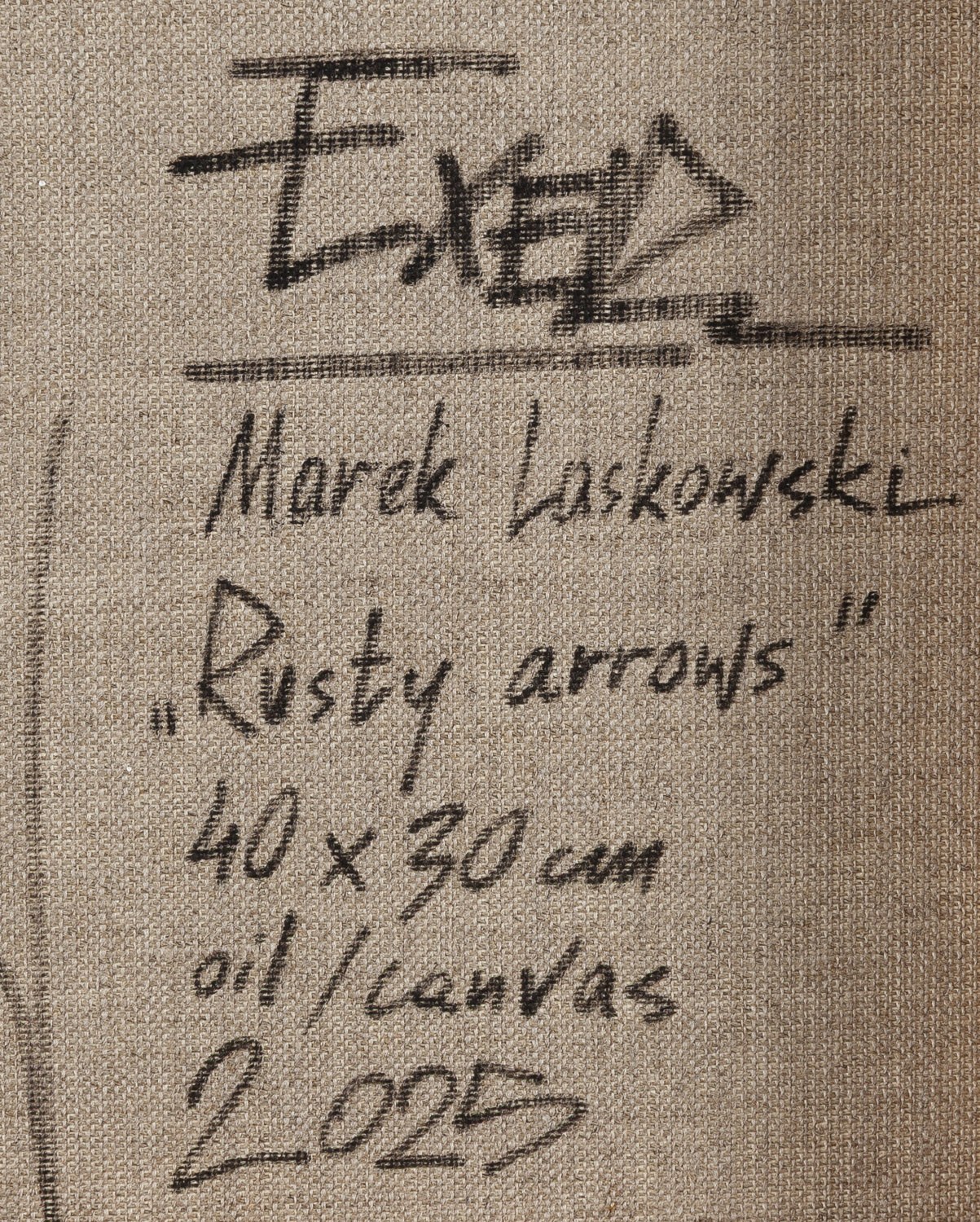 sygnowany, datowany i opisany na odwrociu: 'EXER | Marek Laskowski | "Rusty arrows" | 40 x 30 cm | oil/canvas | 2025'