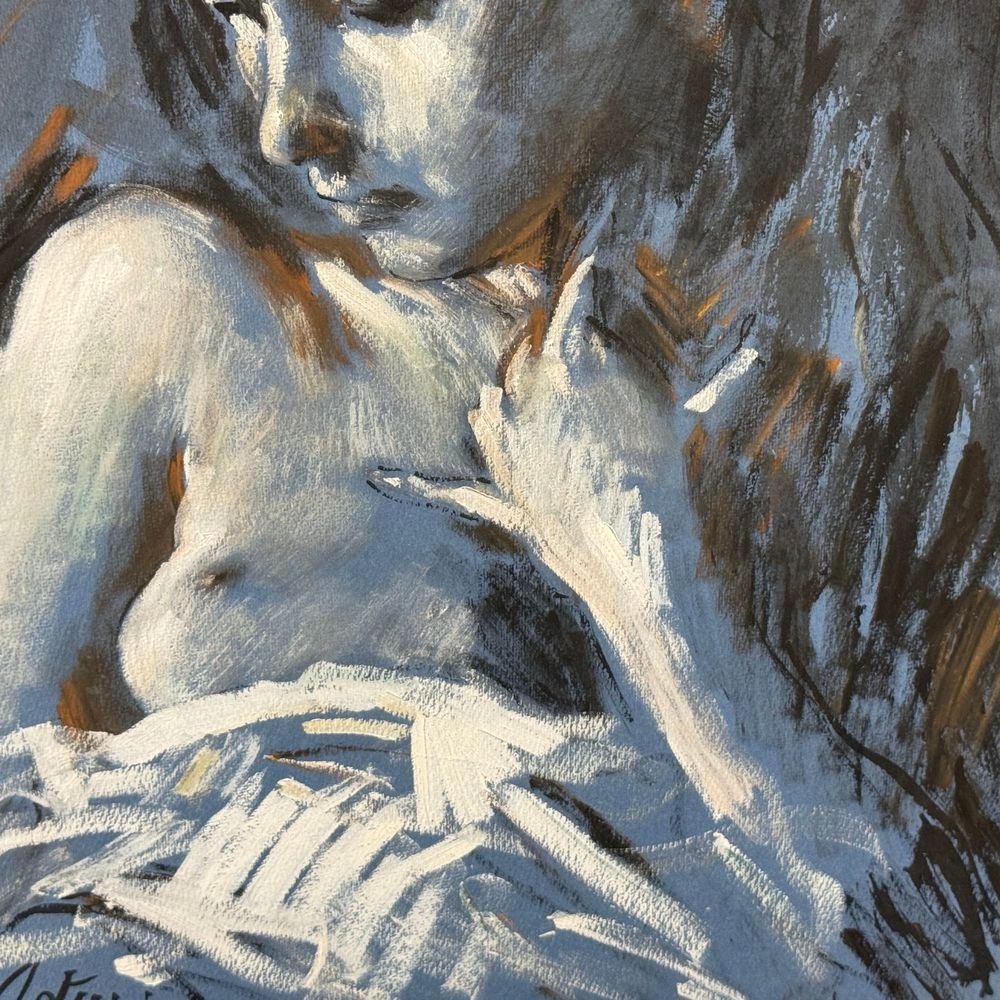Oil painting on paper, 20th-century Italian school, depicting 'La Spagnola', a portrait of a woman. Dimensions within the frame: 38x47 cm. Dimensions including the frame: 60x68 cm. Signed at the bottom left by Antonio Asturi (Vico Equense 1904 - 1986). On the back, there is an additional sketch painting by the master Antonio Asturi. Artwork in good condition.