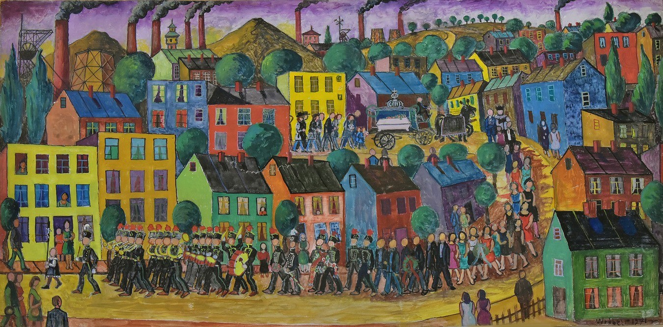 akryl, płyta, 34,5 x 70 cm, sygn. p.d.: Wróbel P. 1971 r. Obraz z prywatnych zbiorów doc. Józefa Ligęzy (1910-1972), wybitnego etnografa, folklorysty, zbieracza śląskich pieśni ludowych, w latach 1963-1972 dyrektora Muzeum Górnośląskiego w Bytomiu.