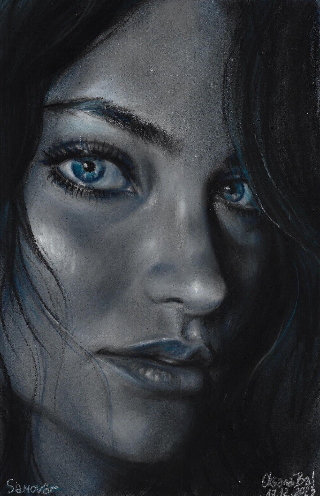 Realizm : portret kobiety , praca wykonana ręcznie przez autorkę w jednym egzemplarzu.Sygnowana w dolnym rogu.