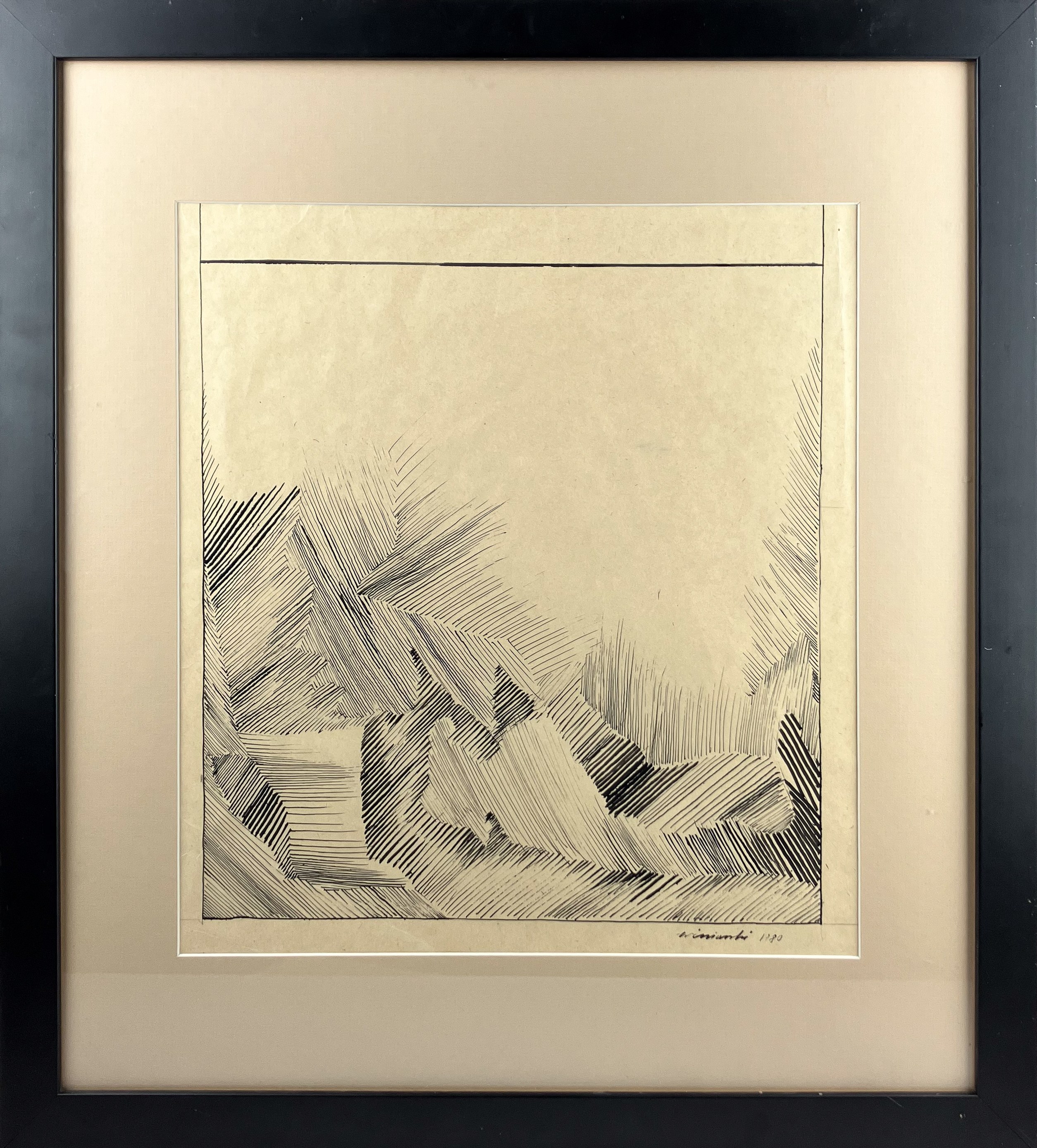 tusz, papier, 37,5 × 32 cm w świetle passe-partout