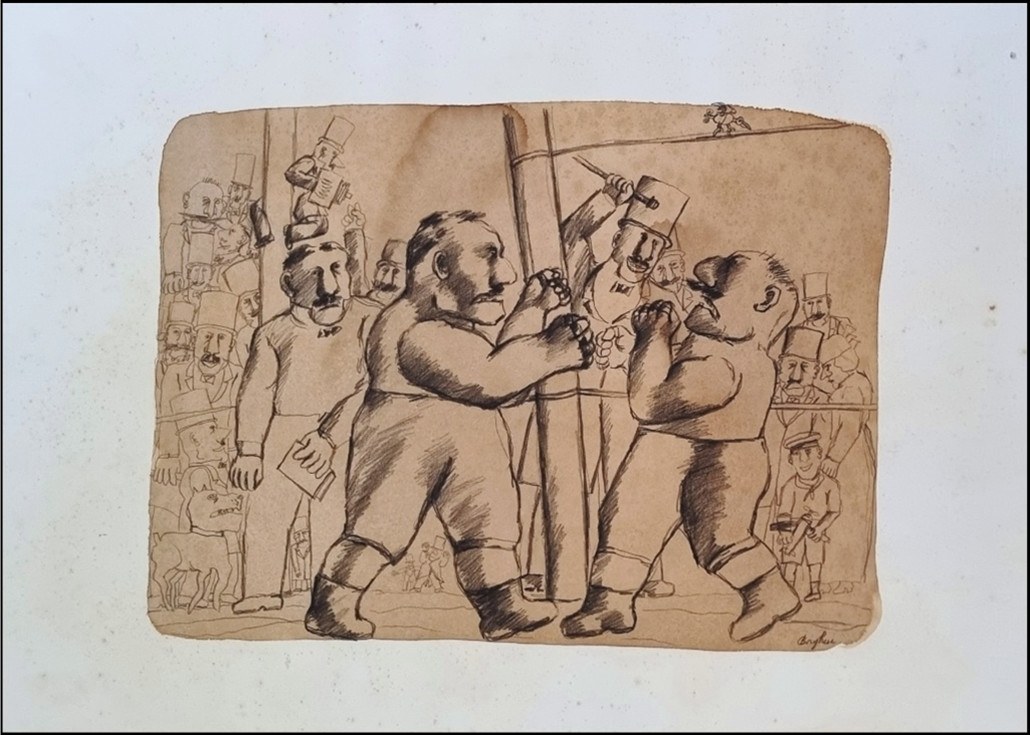BORGHESE FRANZ Roma 1941 - 2005 "Senza titolo" Acquerello, carboncino e matita su cartoncino, cm 70x50. Firmato sul fronte in basso a destra. (Presenta fioriture). Provenienza eredi Borghese.