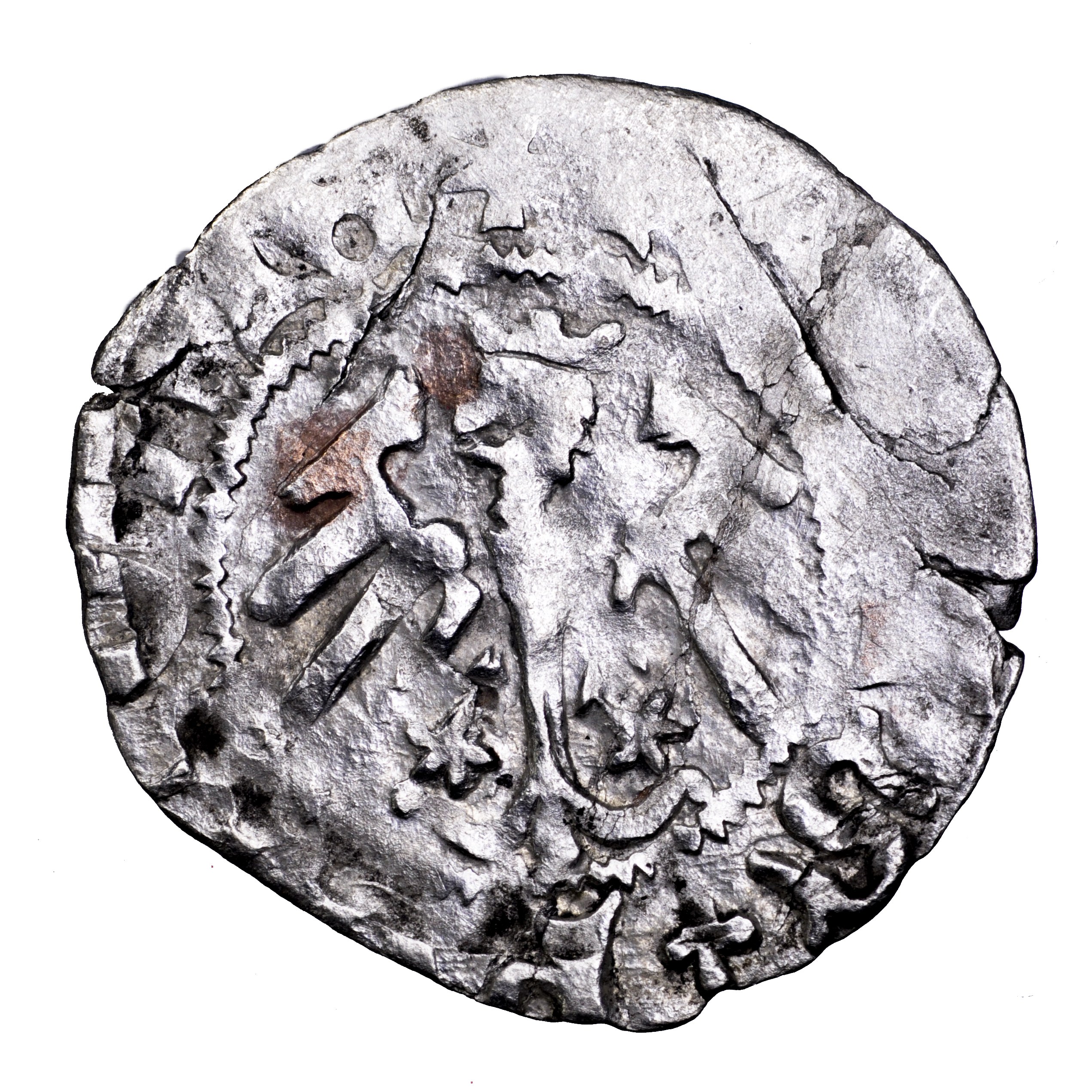 Korona otwarta, znak menniczy w postaci litery W i dwukrzyża.