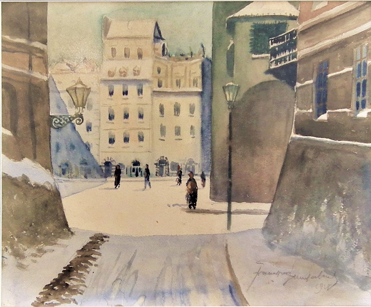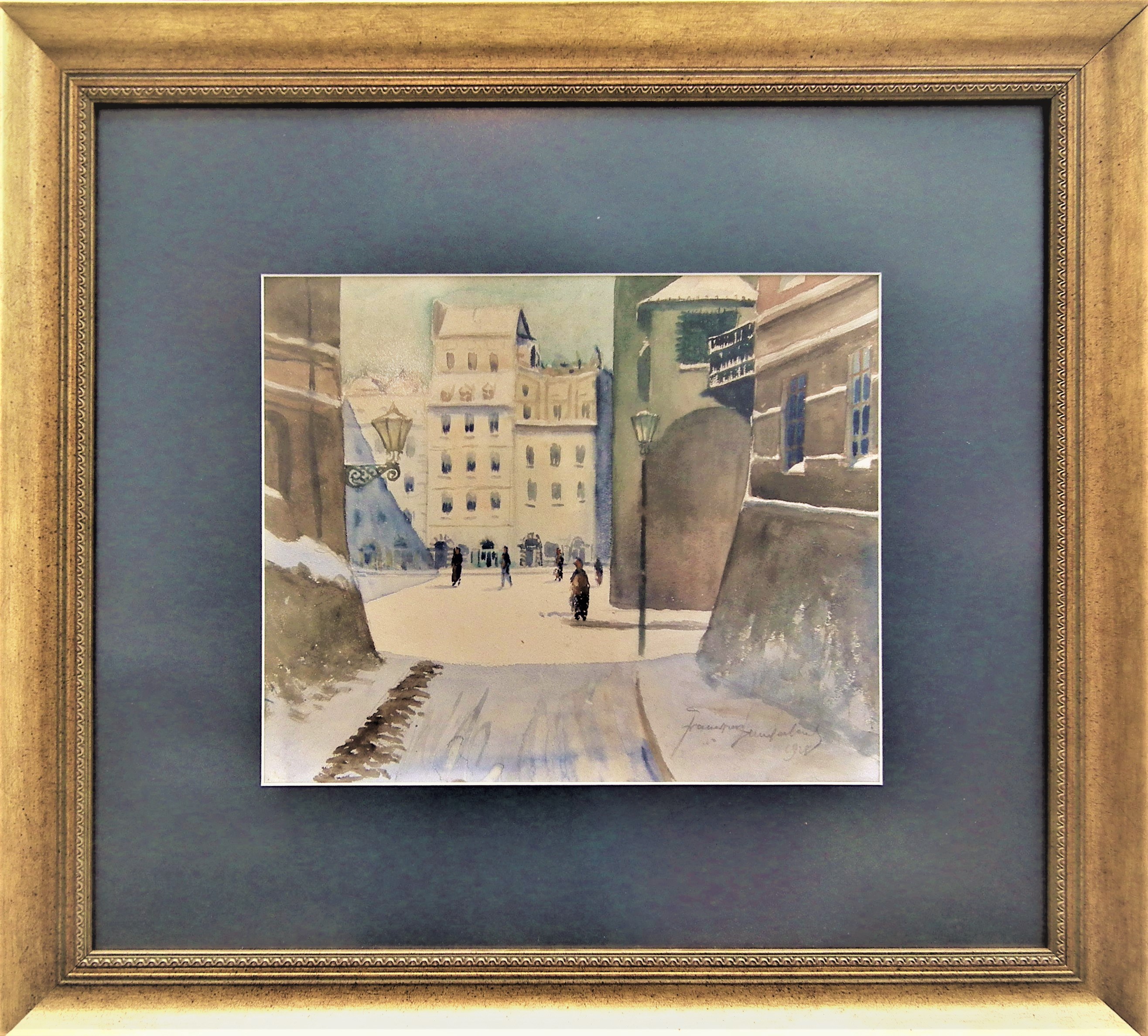 format:29x35,5cm,akwarela,oprawiona w passe-partout i ramę