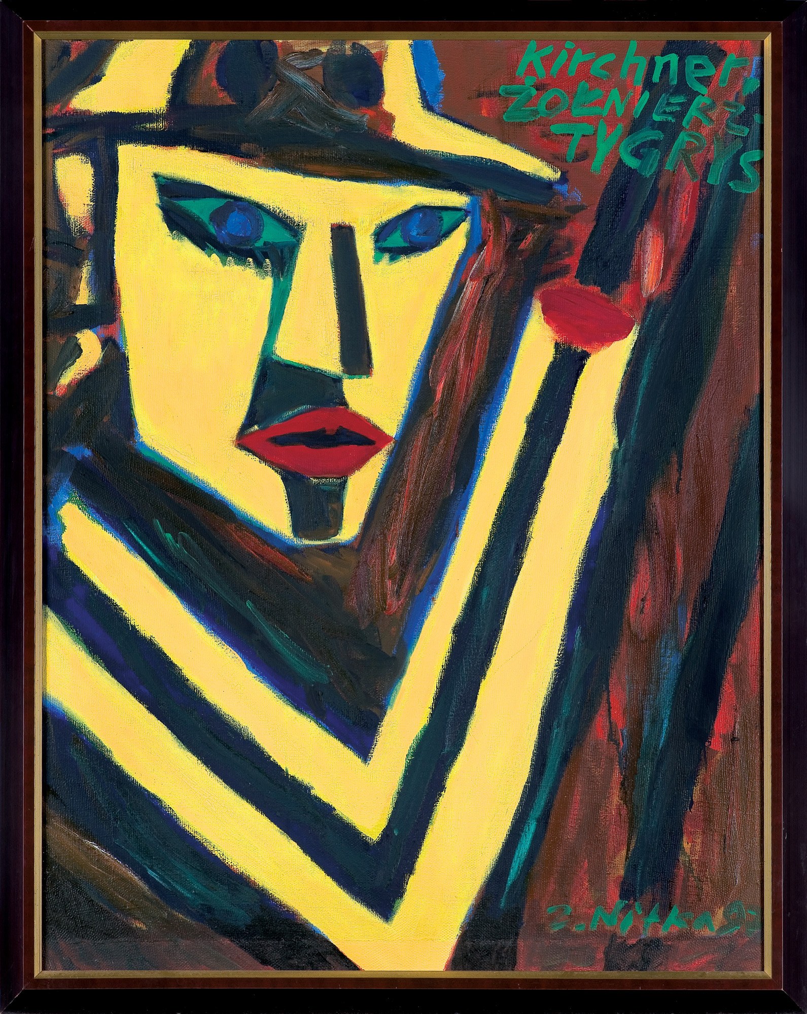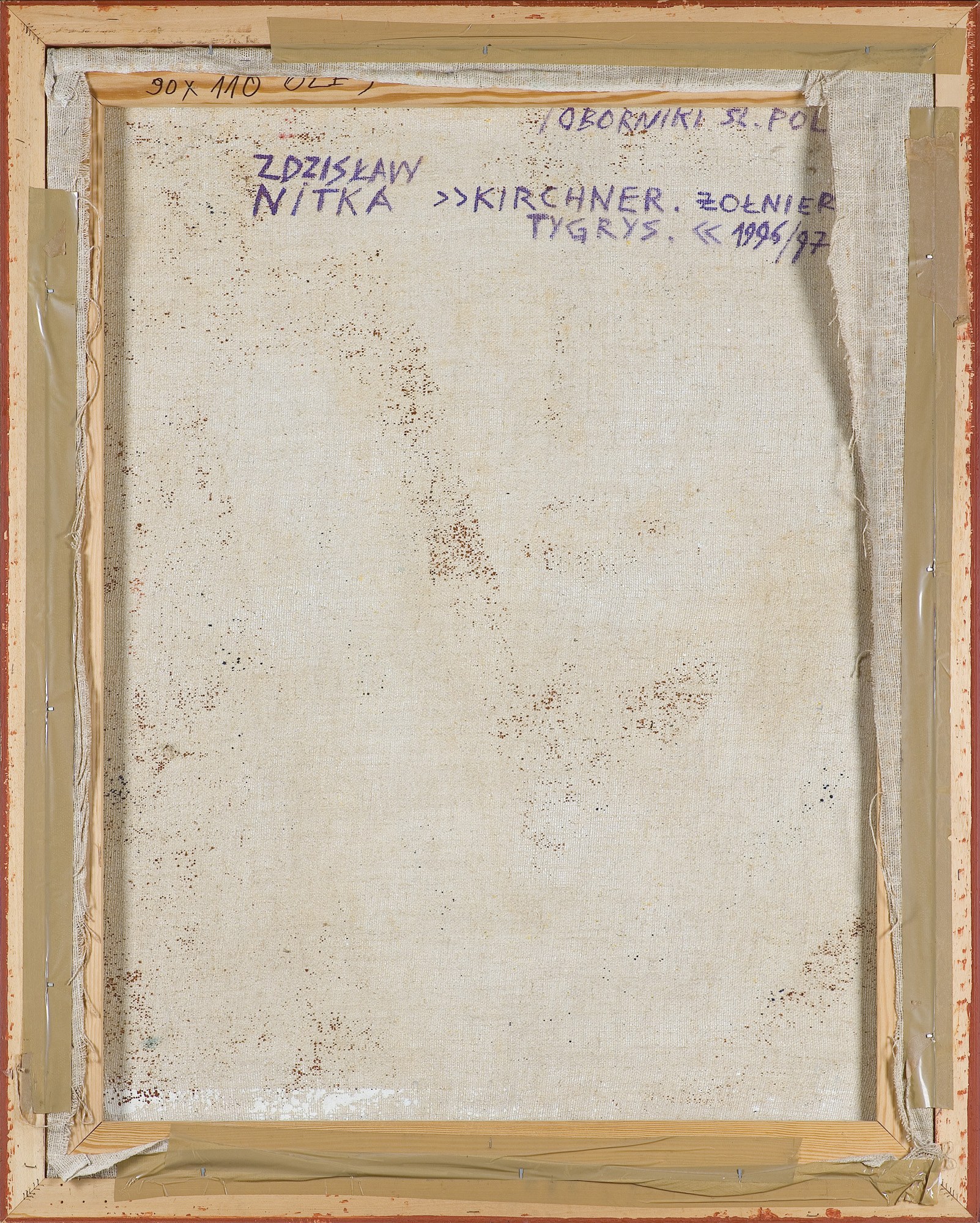 na odwr. na pł. g.: ZDZISŁAW NITKA >> KIRCHNER . ŻOŁNIERZ, | TYGRYS. << 1996/97, powyżej OBORNIKI ŚL. POLSKA; na g. listwie flamastrem: 90 x 110 OLEJ