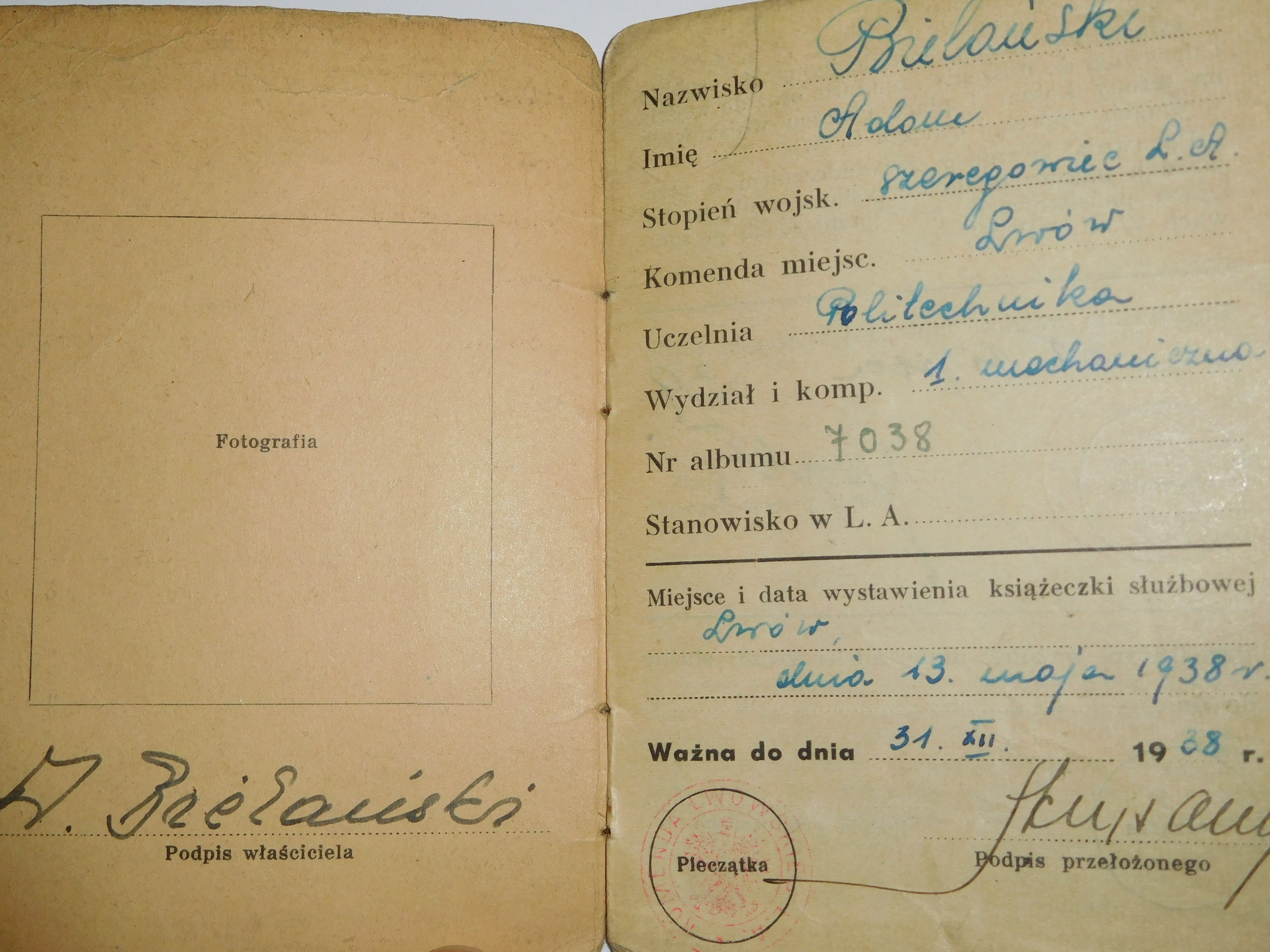 1938–1945. ZBIÓR 4 DOKUMENTÓW WOJSKOWYCH I POLITECHNICZNYCH ZE LWOWA.