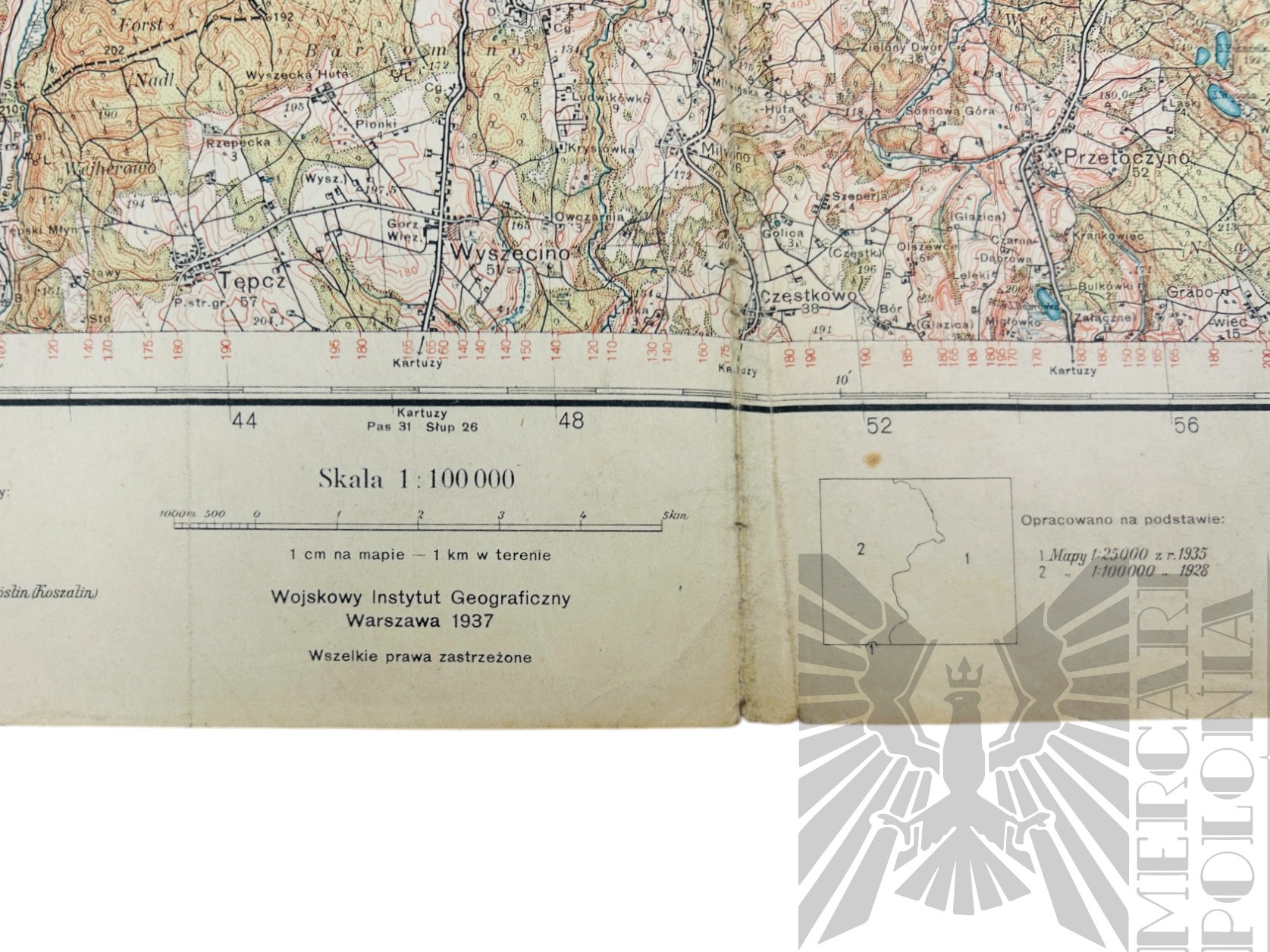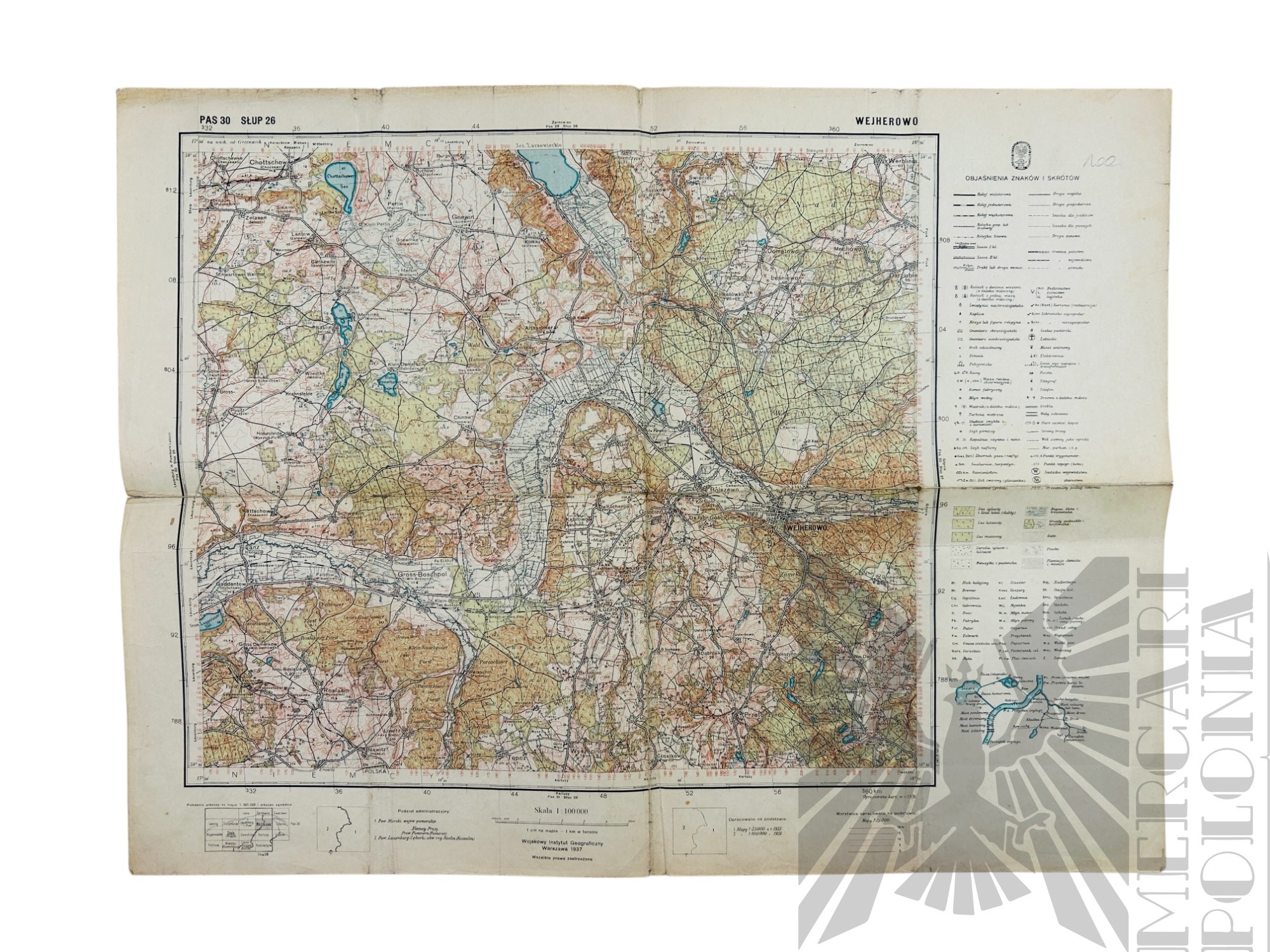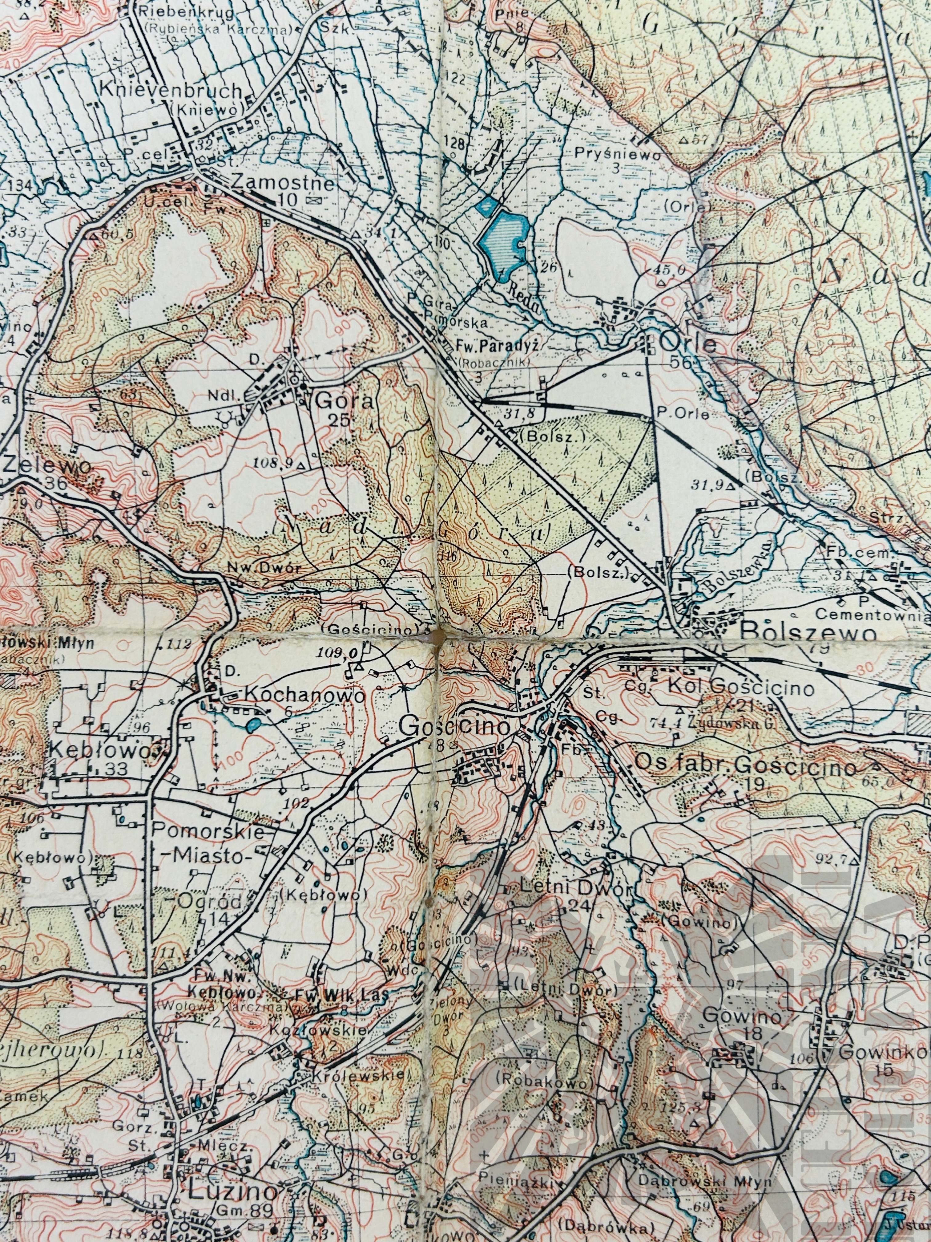 Mapa Wejherowa wydana przez Wojskowy Instytut Geograficzny w Warszawie w 1937 roku. Skala 1:100 000.