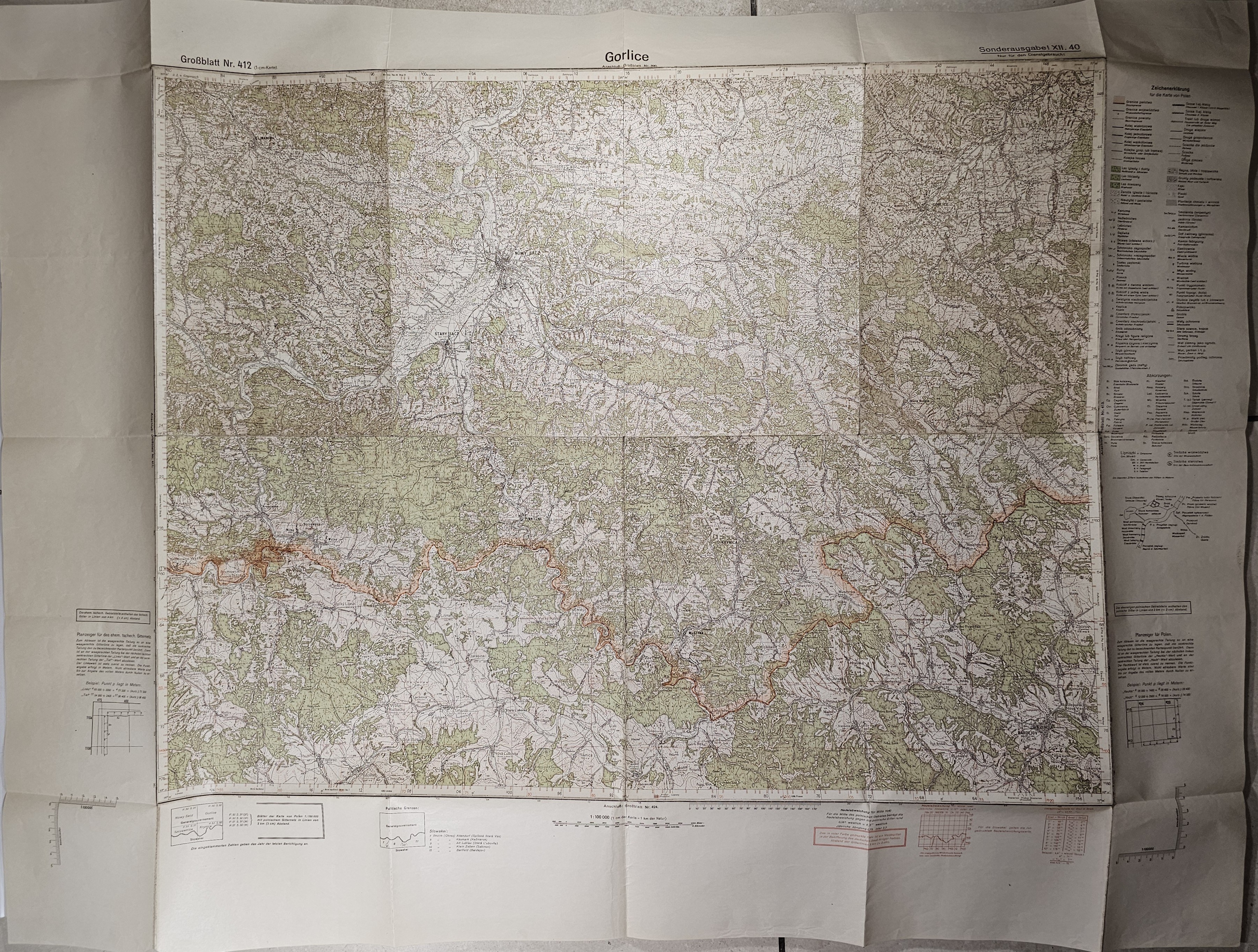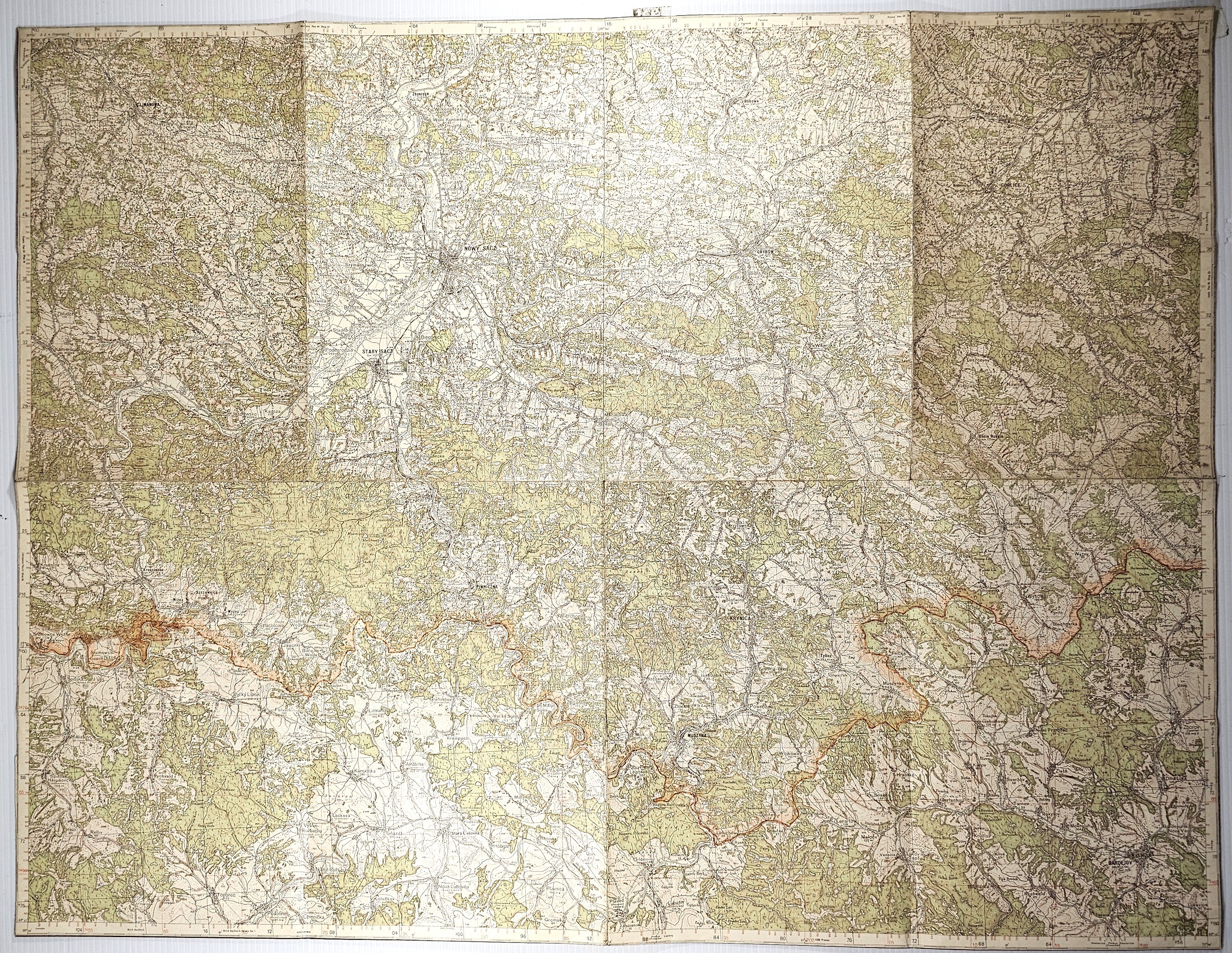 Wym. arkusza 100 x 75 cm. Przy złożeniach minimalne przedarcia, poza tym stan dobry/bardzo dobry.