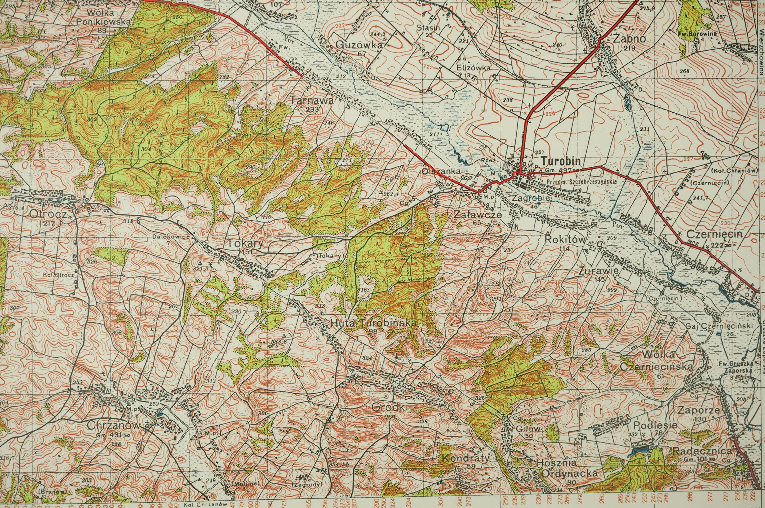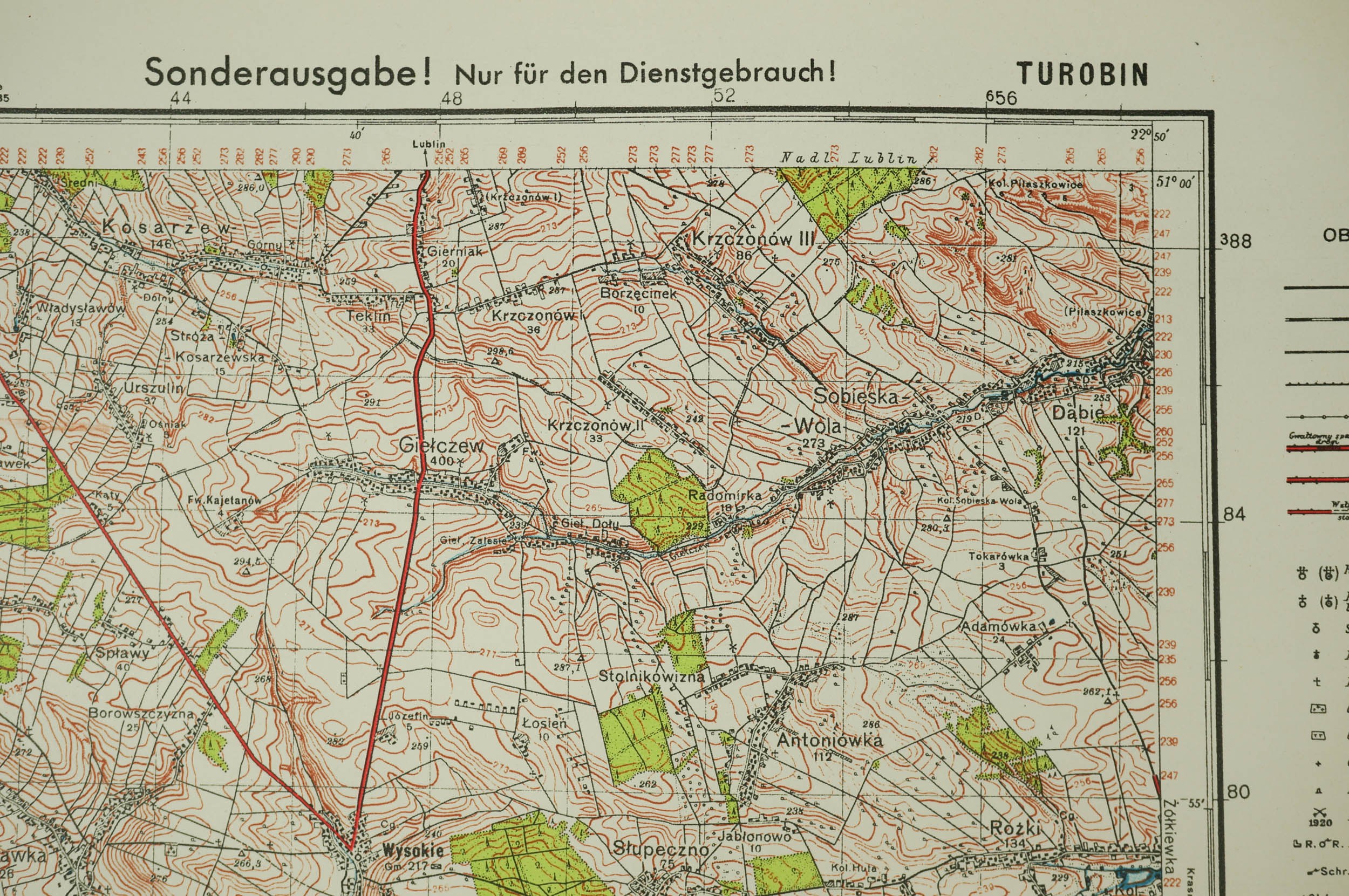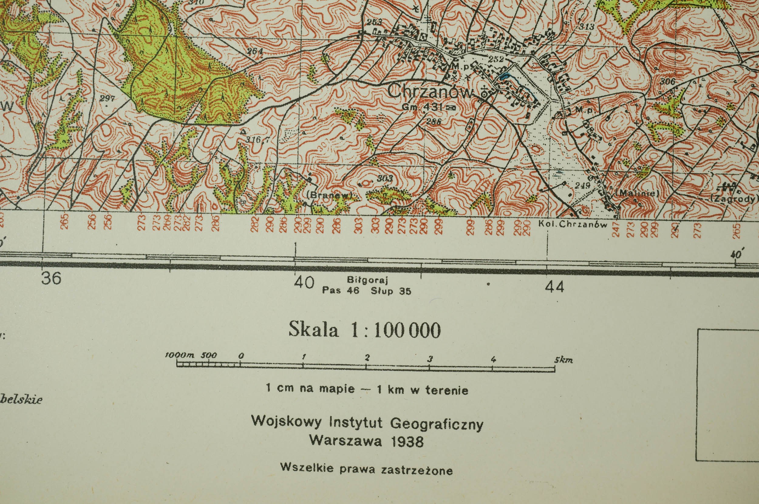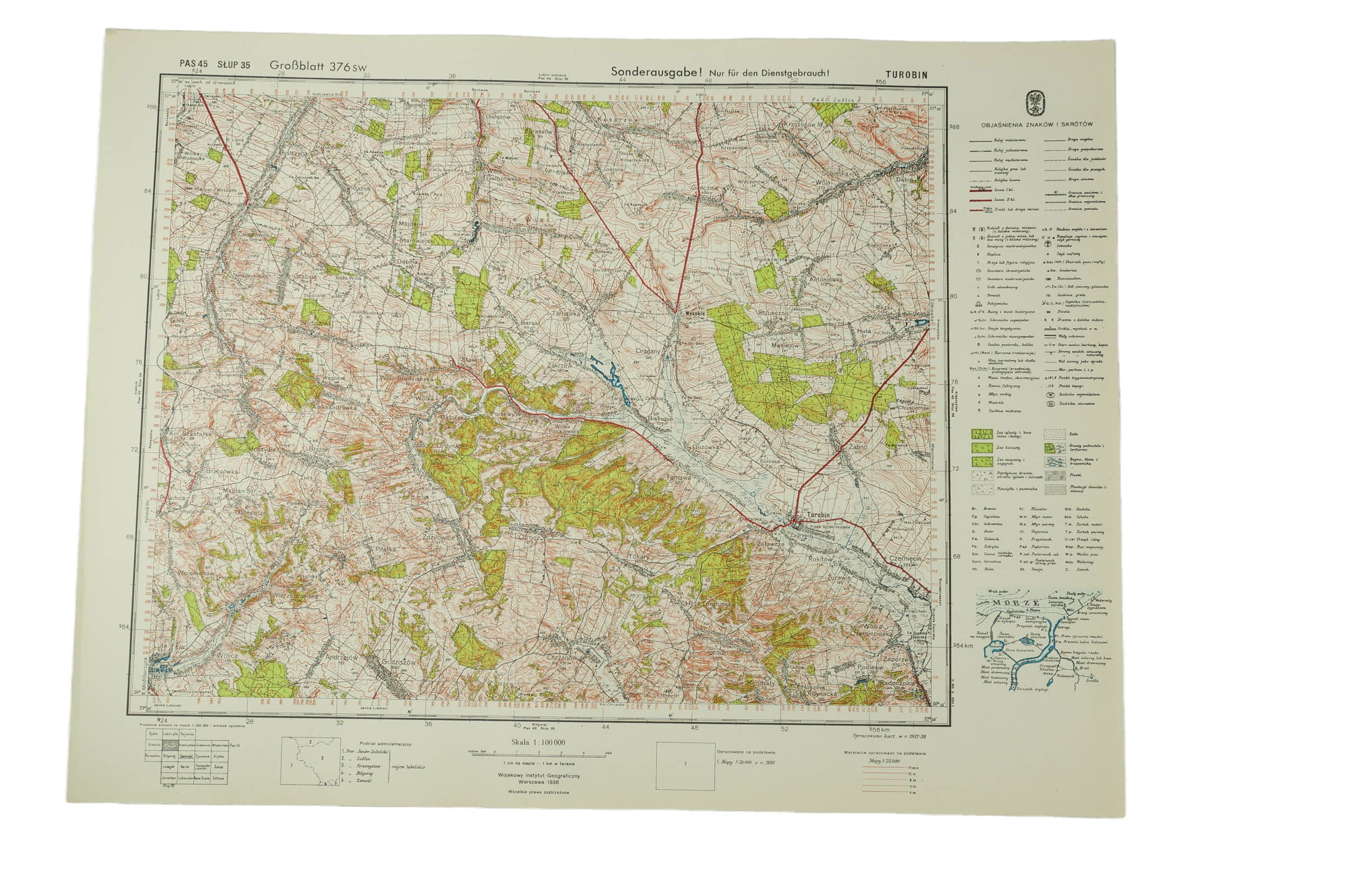 Turobin PAS 45, SŁUP 35, Grossblatt 376 SW - mapa WIG [Wojskowy Instytut Geograficzny] II RP, Warszawa 1938r., skala 1: 100.000, kolor, f. 47x35,5cm