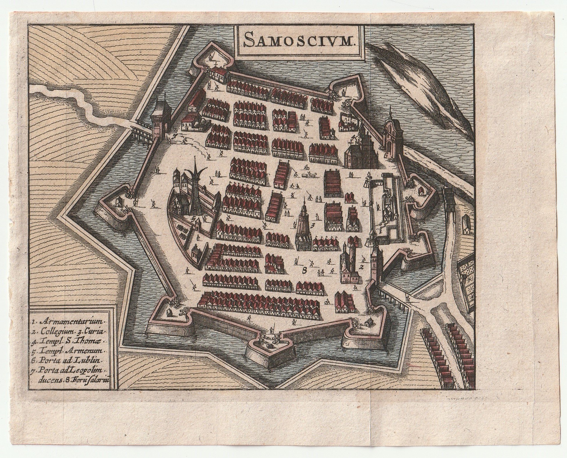 wzorowany na widoku Brauna/Hogenberga; miedz. kolor., st. bdb.; wym.: 130x107 mm; SAMOSCIVM.