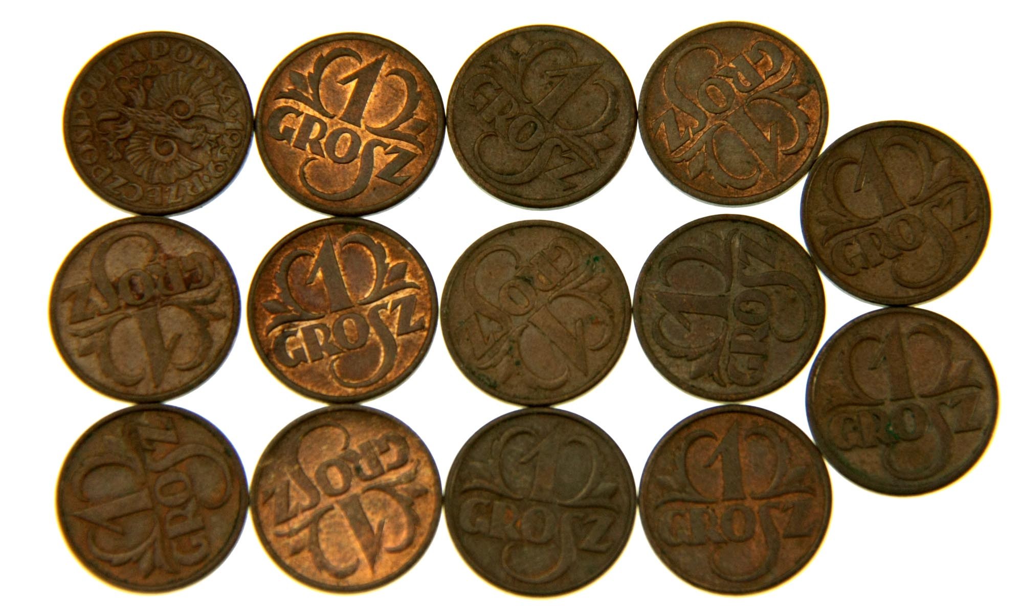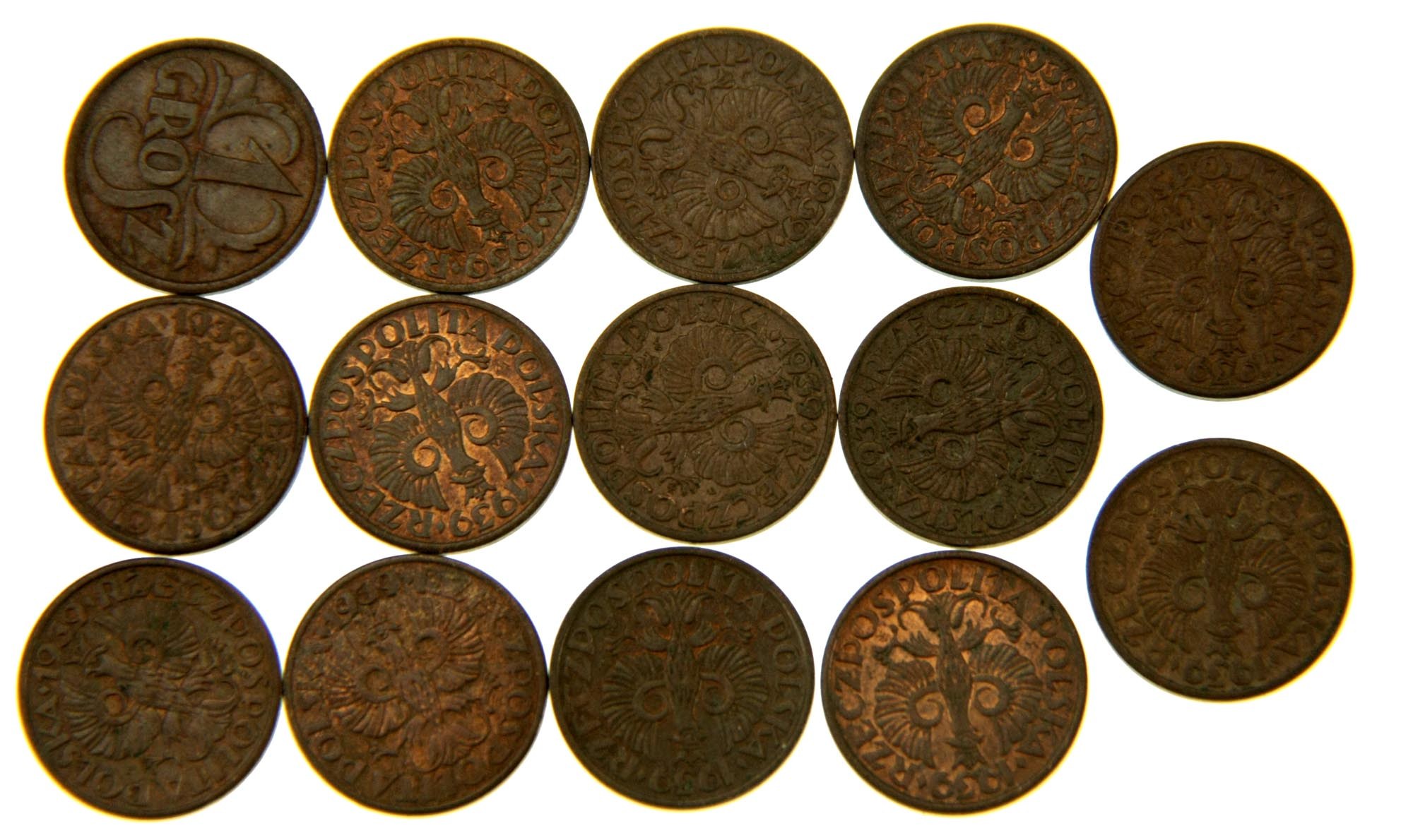 1 grosz, zestaw 14 monet, 1939, stan 1-/2