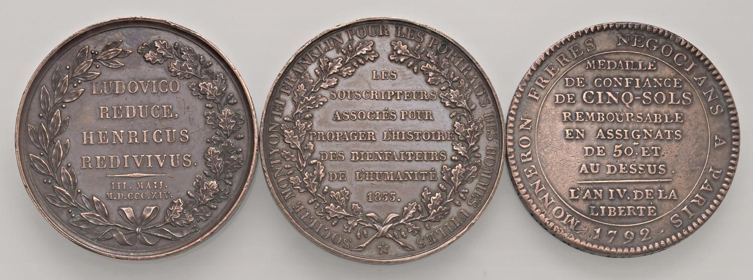 FRANCIA Lotto di tre medaglie come da foto, tutte in bronzo e lucidate