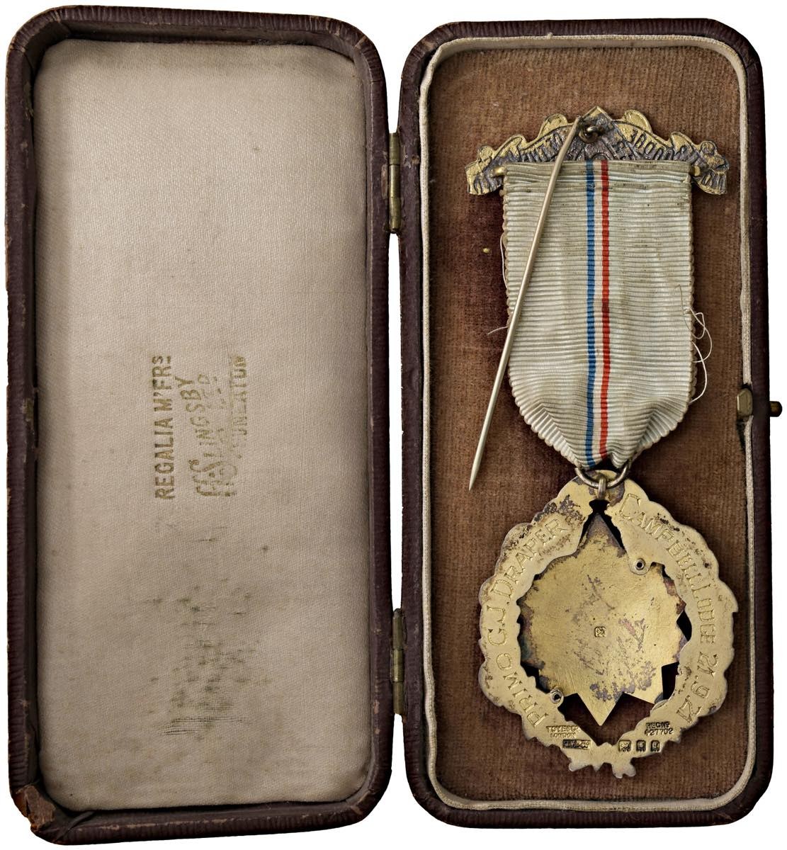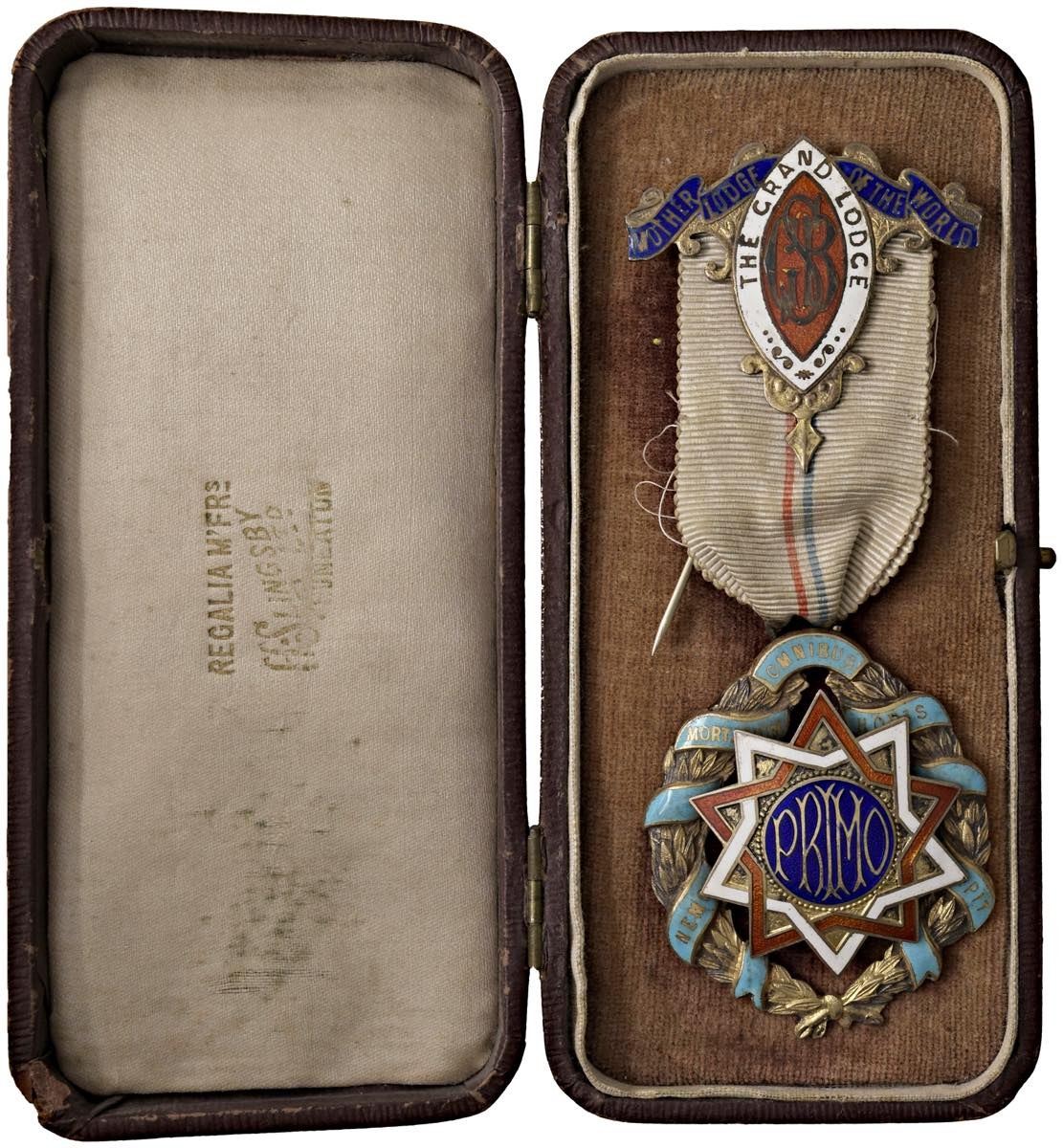 Masonic decorations and objects - MASSONERIA. Decorazione con smalti del XX secolo La Gran Loggia C.S.B in anepigrafe - Metallo e smalti ( Ø 111x45 mm) Con cofanetto rettangolare
