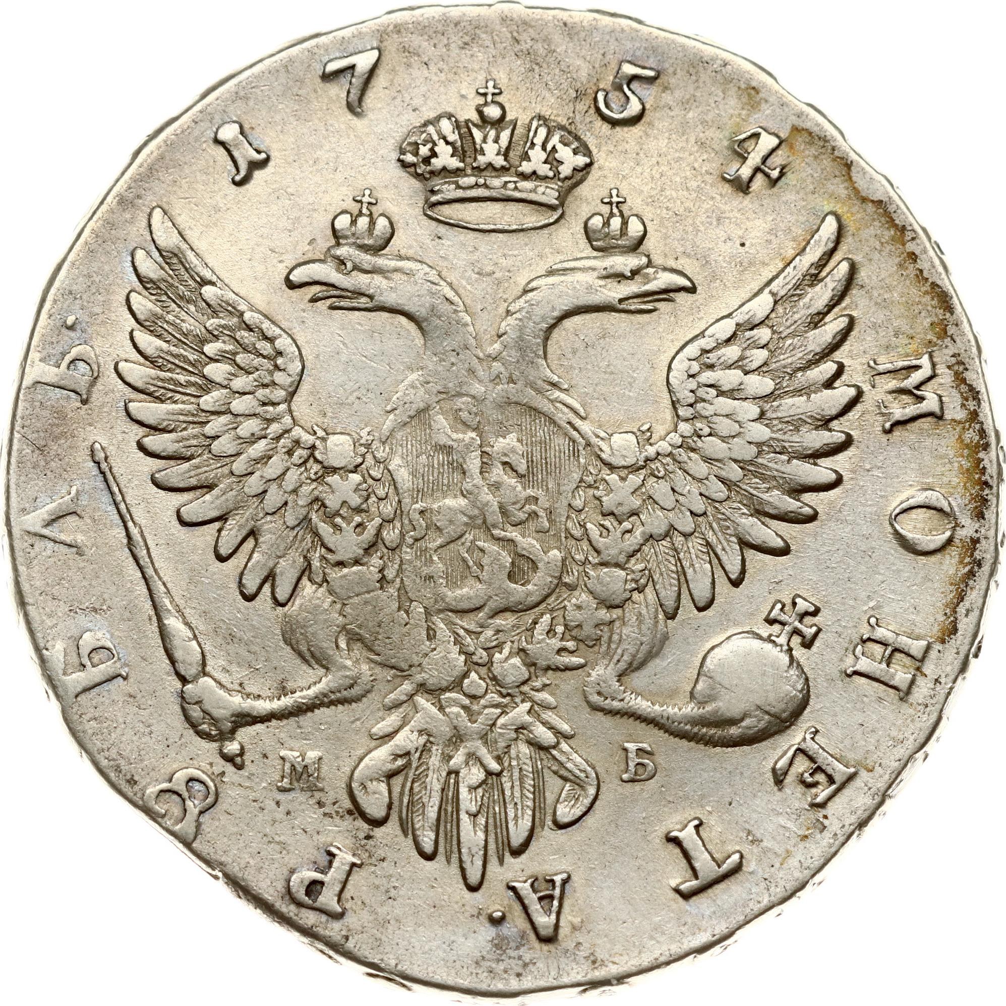 Russia. Elizabeth Petrovna (1741-1762). Rouble 1754 ММД-МБ, Red mint, Moscow. Silver 24.97 g. Bitkin 133; Uzdenikov №0864; Petrov 3 rub. Old patina.