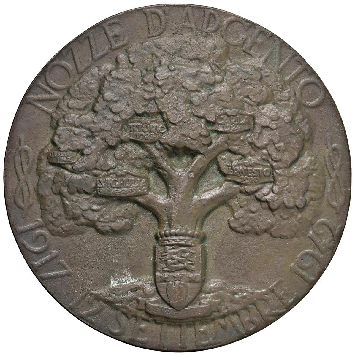 Giovanni Treccani e Alfieri Giulia Quartara Medaglia da fusione 1942 Nozze d'Argento - AE (g 365 - Ø 97 mm)