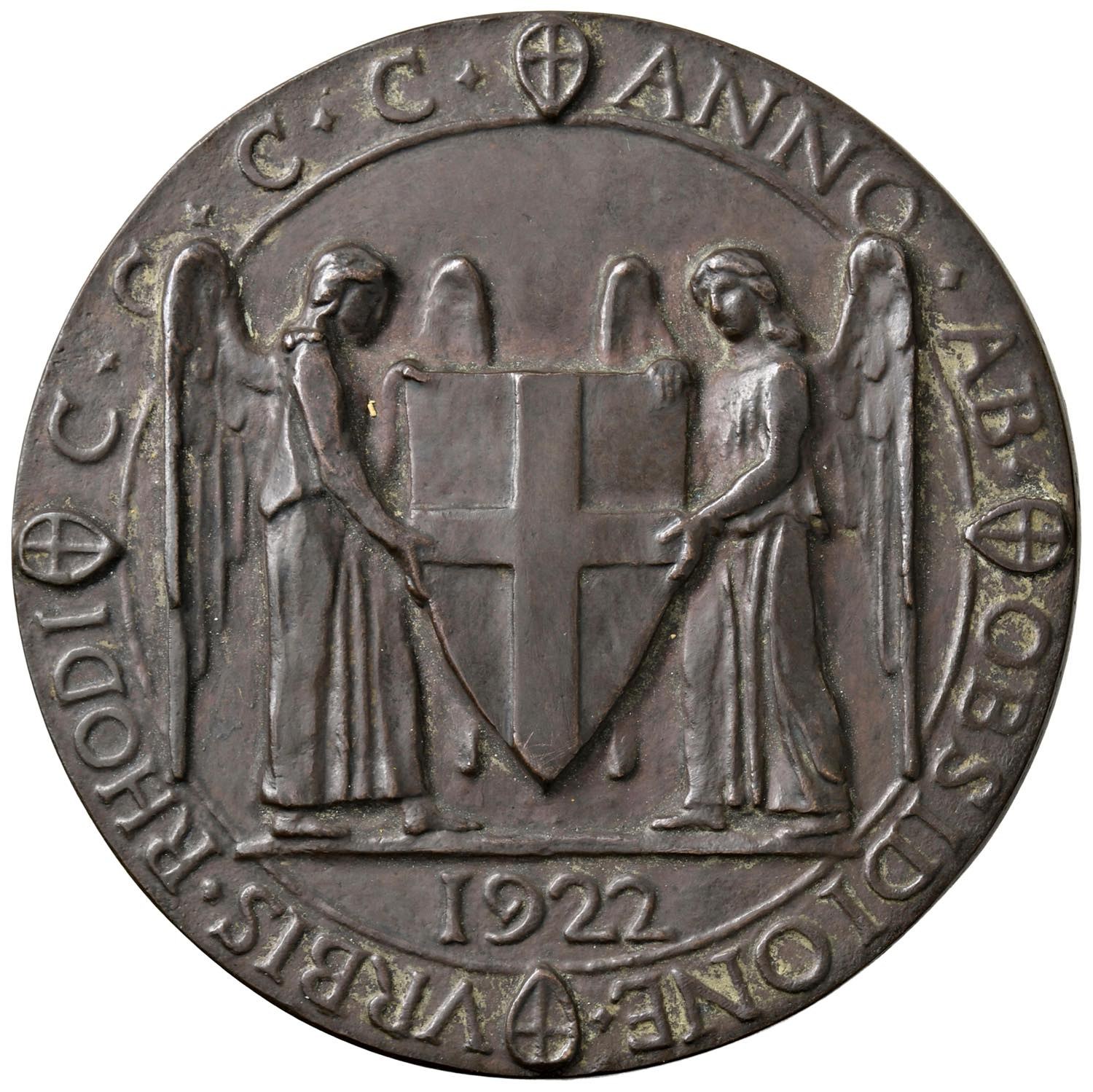 GRECIA Medaglia 1922 Colonizzazione della Grecia. Obsidione Urbis Rhodi per il 400° anniversario dell’assedio di Rodi (1522) - Opus: Romagnoli - AE (g 237 - Ø 82 mm) R