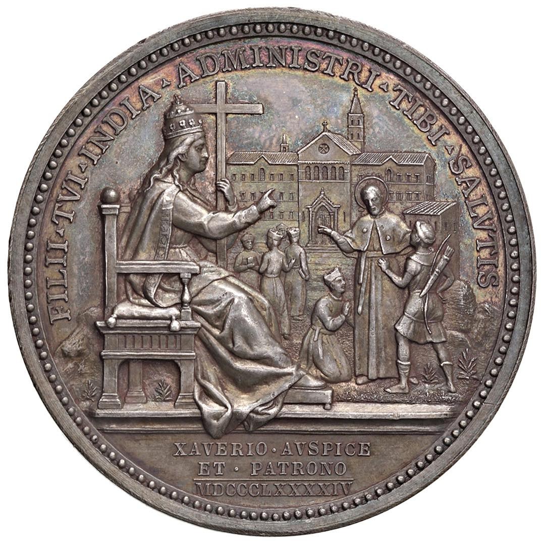 Leone XIII (1878-1903) Medaglia annuale 1894 An. XVII Personificazione della chiesa seduta e San Francesco Saverio - Opus: F. Bianchi - Mont. 43 AG (g 36,3 - Ø 43,66 mm)