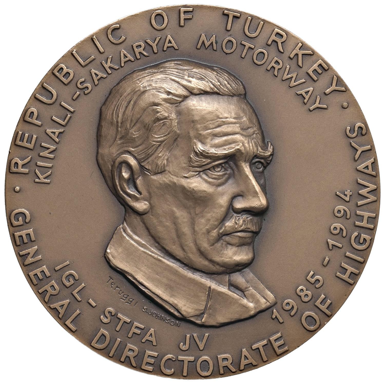 Autostrada Kinali-Sakarya. Medaglia 1994 IGL-STFA JV, lavori in Turchia. General Directorate Highways 1985-1994 - Opus: L. Teruggi, edizione Johnson Milano - AE (g 121 - Ã