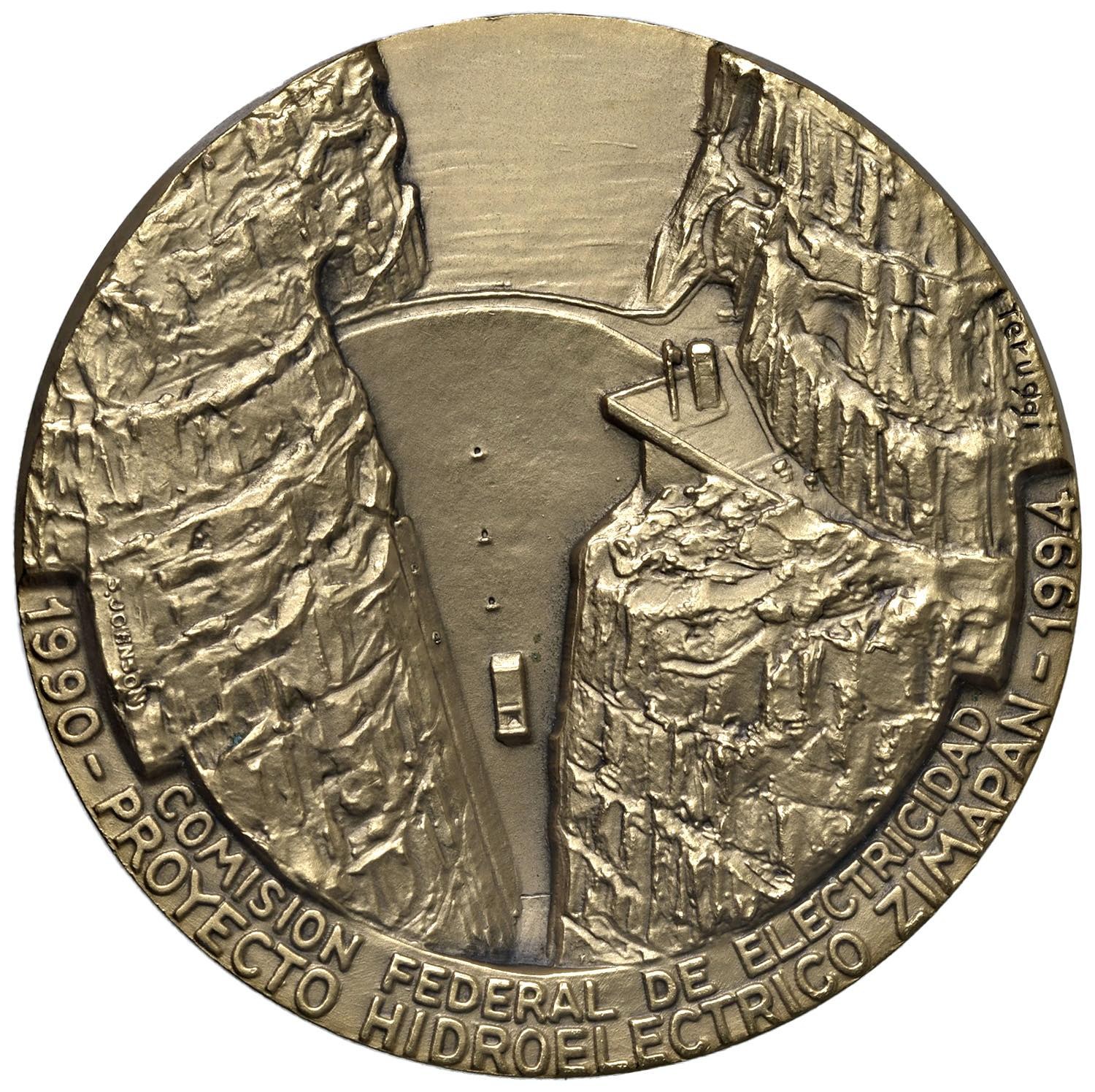 Diga di Zimapam. Medaglia 1994 Impregilo-Condux-Dumez & C. lavori in Messico alla diga 1990-1994 - Opus: L. Teruggi, edizione Johnson Milano - AE dorato (g 135 - Ã
