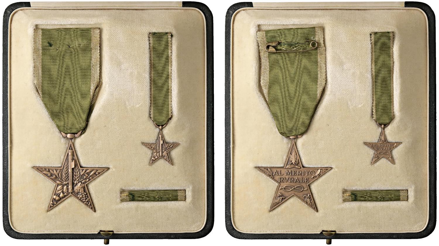 Regno d'Italia Stella al Merito Rurale Set XX secolo con stella, mignonette a stella e nastrino per militari - AE In cofanetto di emissione della: Società Italiana per L'Arte della Medaglia, Roma.
