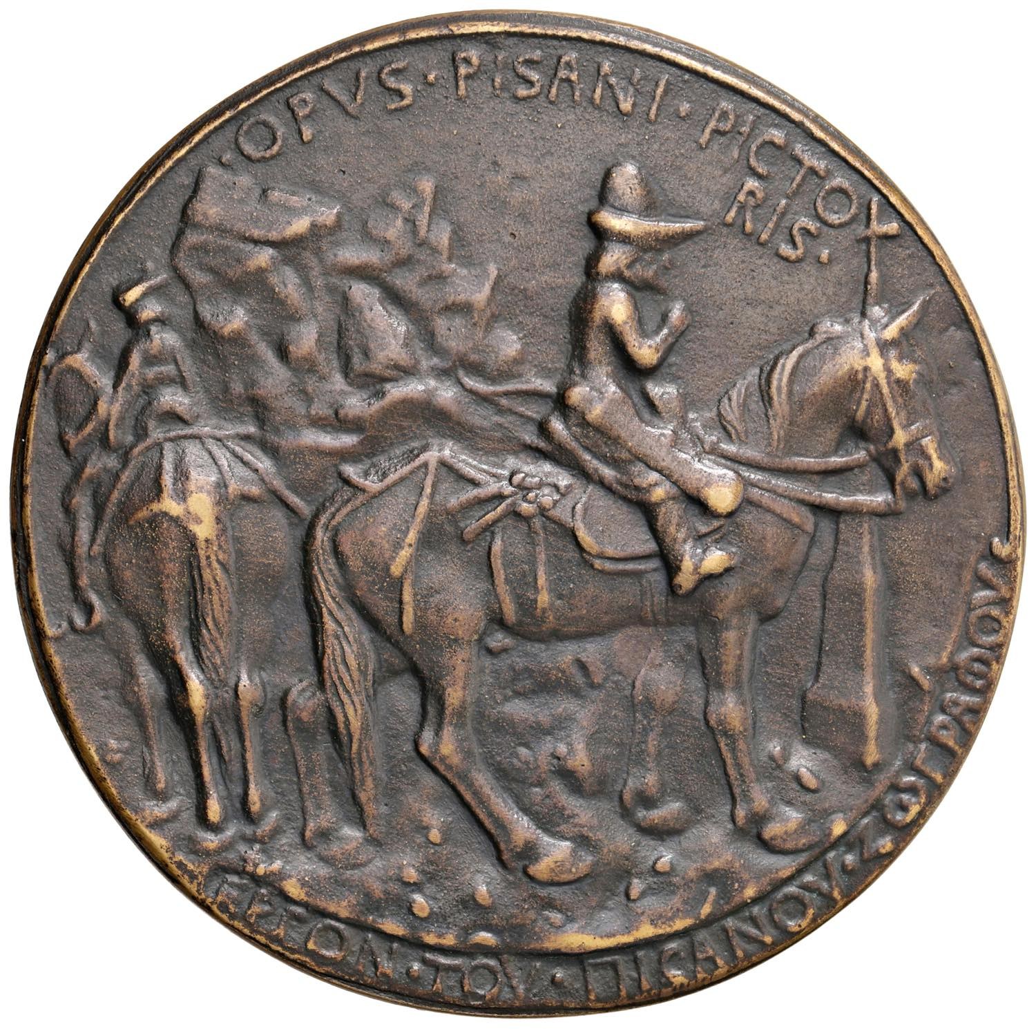 Giovanni VIII il Paleologo (1391-1448) Medaglia da fusione (1439) Venuta dell’imperatore al concilio di Ferrara - Opus: Antonio di Puccio Pisano, detto il Pisanello - Armand I,7,20; Borner 20,5 AE (g 284 - Ø 98 mm) RRR Rarissima fusione posteriore antica.