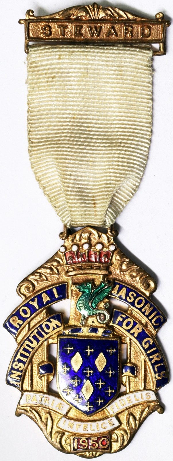 Royal Masonic Institution for girls. Steward. Total sizes: 52x33 mm ca. Bronze and enamels.