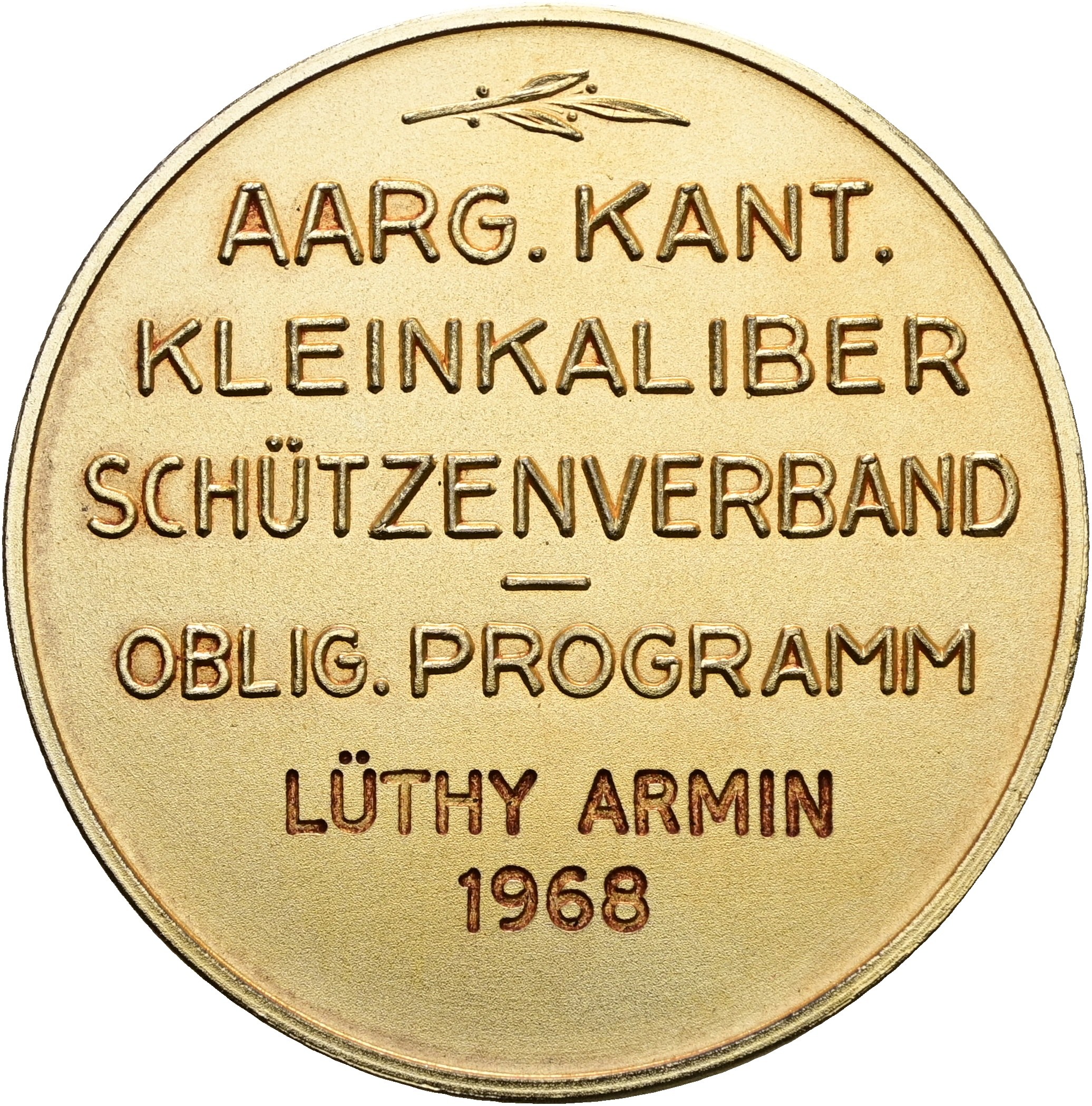 Schweiz - Aargau - vergoldete Silbermedaille 1968 - Aargauischer kantonaler Kleinkaliberschützenverband - Switzerland, Swiss Shooting Medal