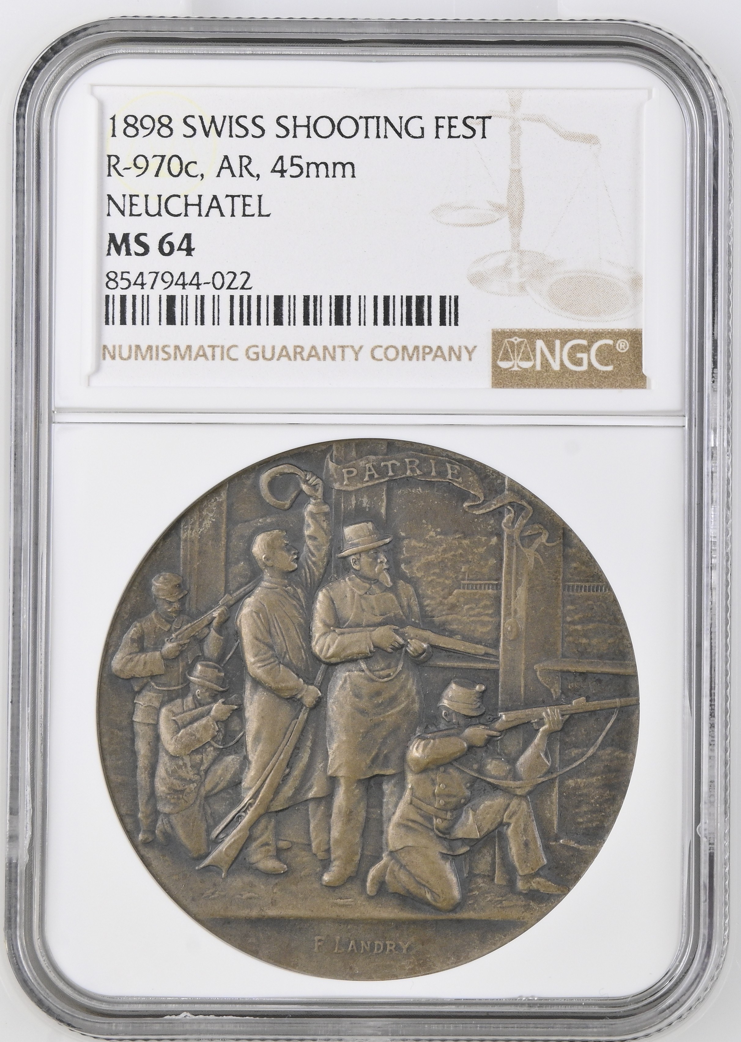 Silbermedaille Tir fédéral Neuchâtel 1898 (Schützenmedaillen Richter 970c). Bewertet von NGC mit MS 64.