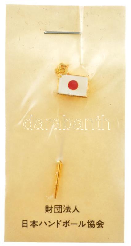 Japán DN aranyozott, zománcozott japán zászlót ábrázoló jelvény, eredeti "Japán Kézilabda Szövetség" fóliacsomagolásban T:1