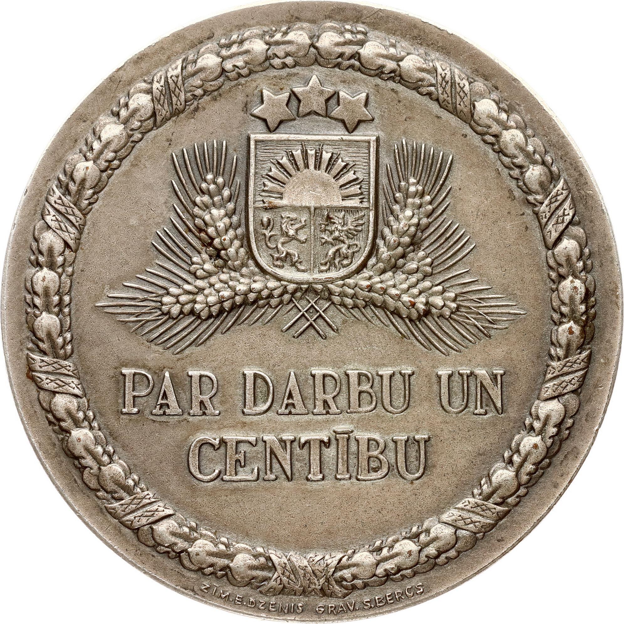 Latvia. Medal Latvian Chamber of Agriculture ND, For work and dedication 1920-1930. Copper silvered, 60 mm, 72.87 g.