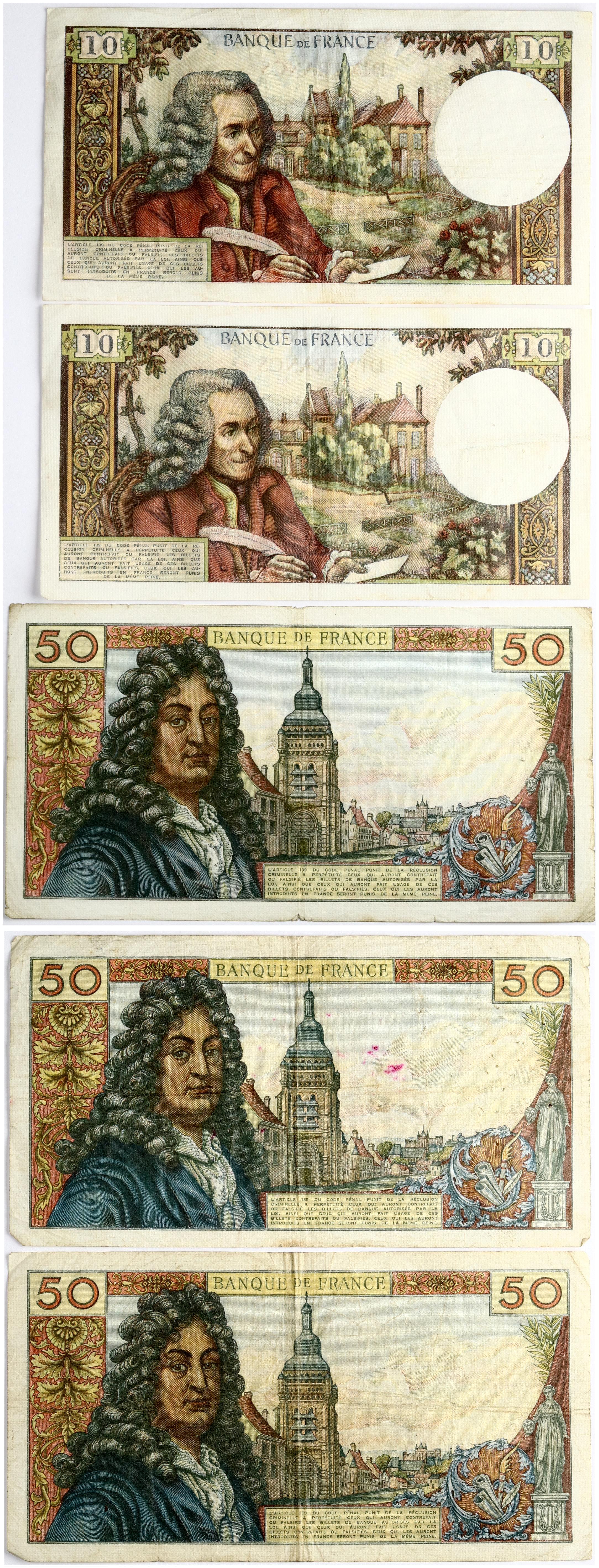 France 10 & 50 Francs (1971-1976) Lot of 5 pcs