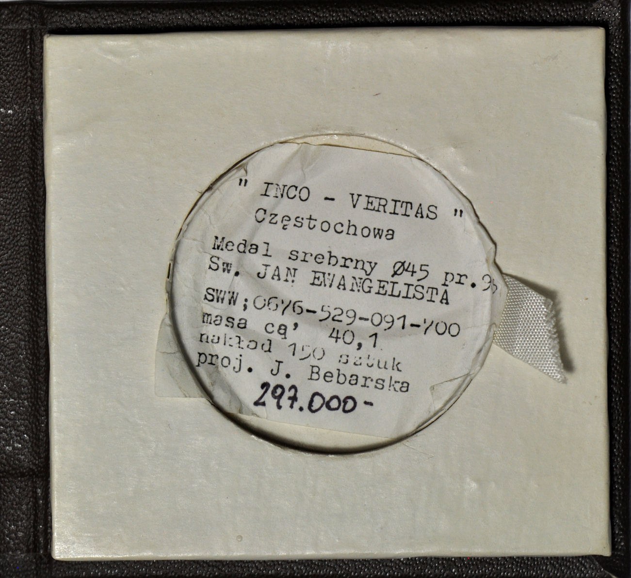 RR-, Medal Jan Ewangelista, NAKŁAD TYLKO 150 szt., srebro 925, 1,19 uncji czystego srebra