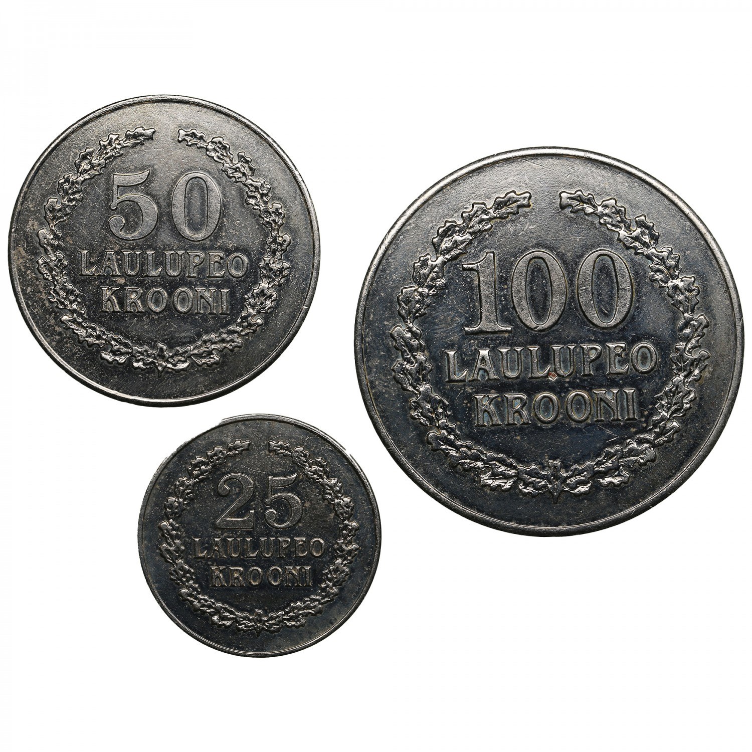 UNC/UNC. Lot includes: 25, 50, 100 Krooni 1990.