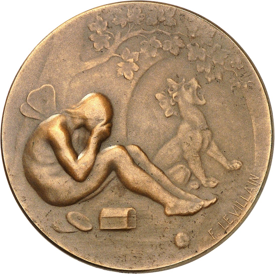 Rv. Psyché assise à droite, pleurant à côté d'un coffret qu'elle doit remplir de la beauté, devant la Porte des enfers ; signature F. LEVILLAIN.
