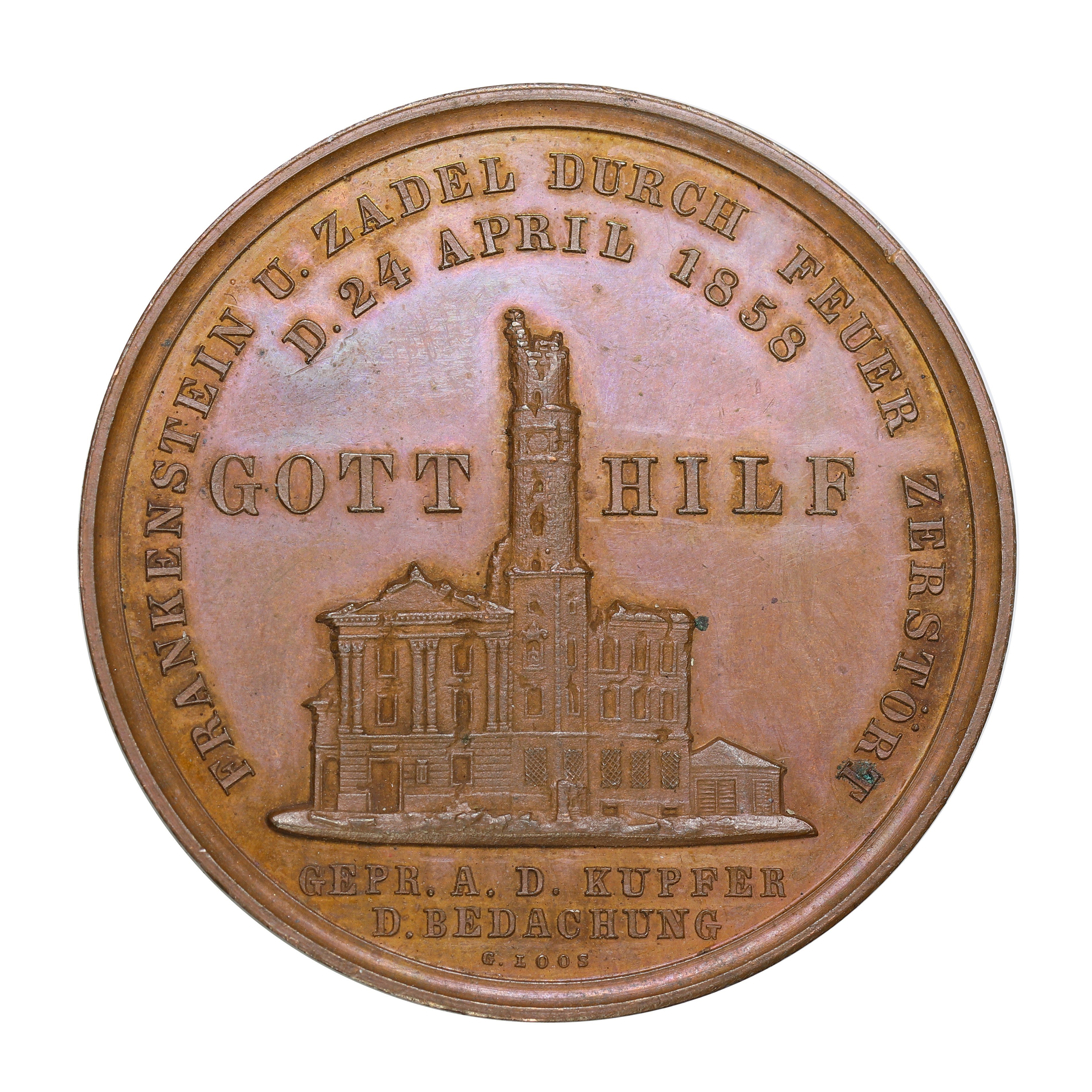 Medal - Dolny Śląsk, Ząbkowice Śląskie/Fraknestein, medal z 1858 r., wybity z okazji odbydowy ratusza w Ząbkowicach Śląskich