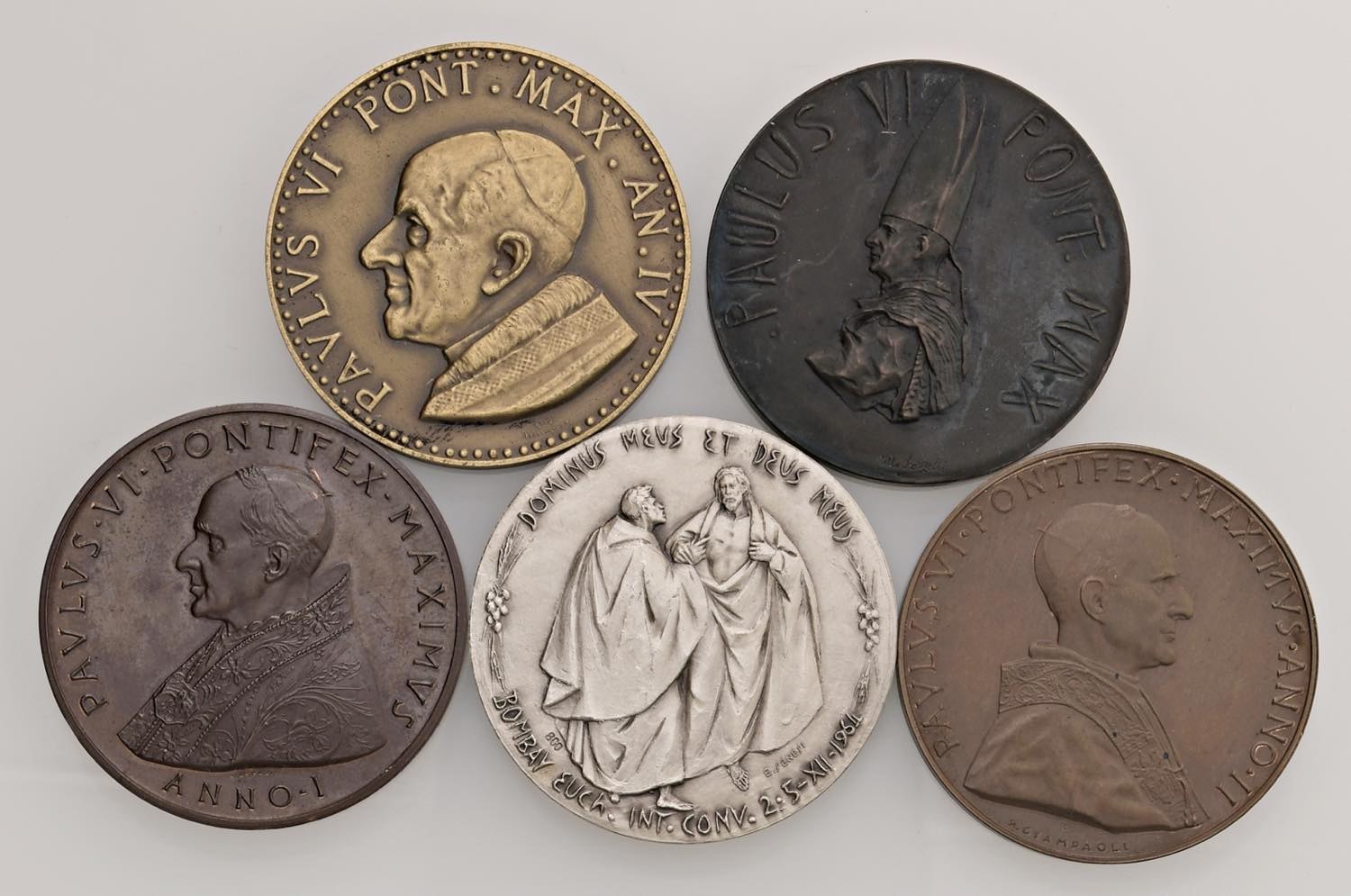 Papal medals - Lotto di 5 Medaglie Papali - 1 in argento Paolo VI...