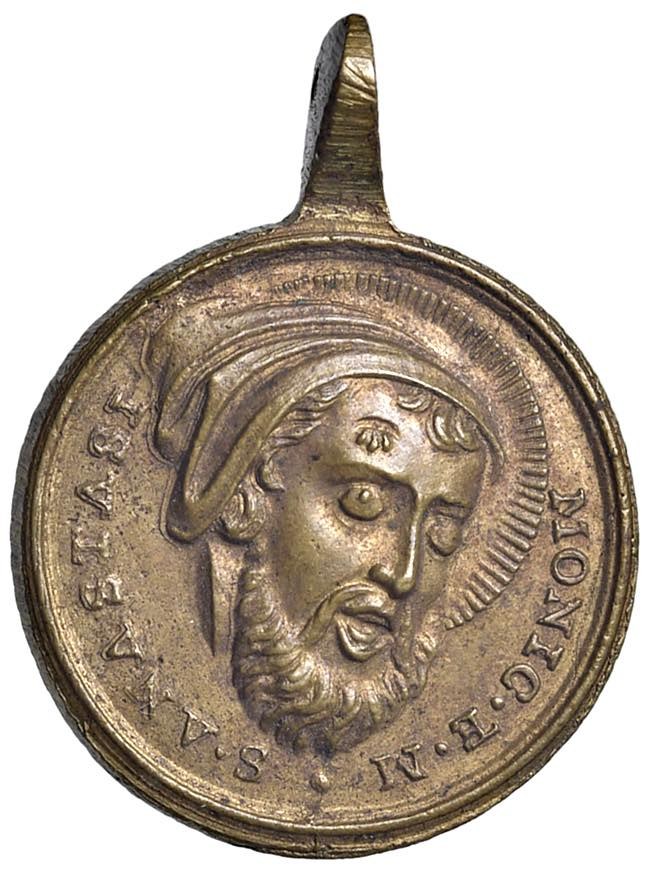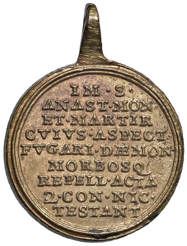 Religious Medals - RELIGIOSA. Medaglia da fusione senza data (XVIII-XIX sec.) Sant' Anastasio, scritta al rovescio - Molto rara - AE (g 9,31 - Ø 26 mm) Con appiccagnolo e ottima conservazione