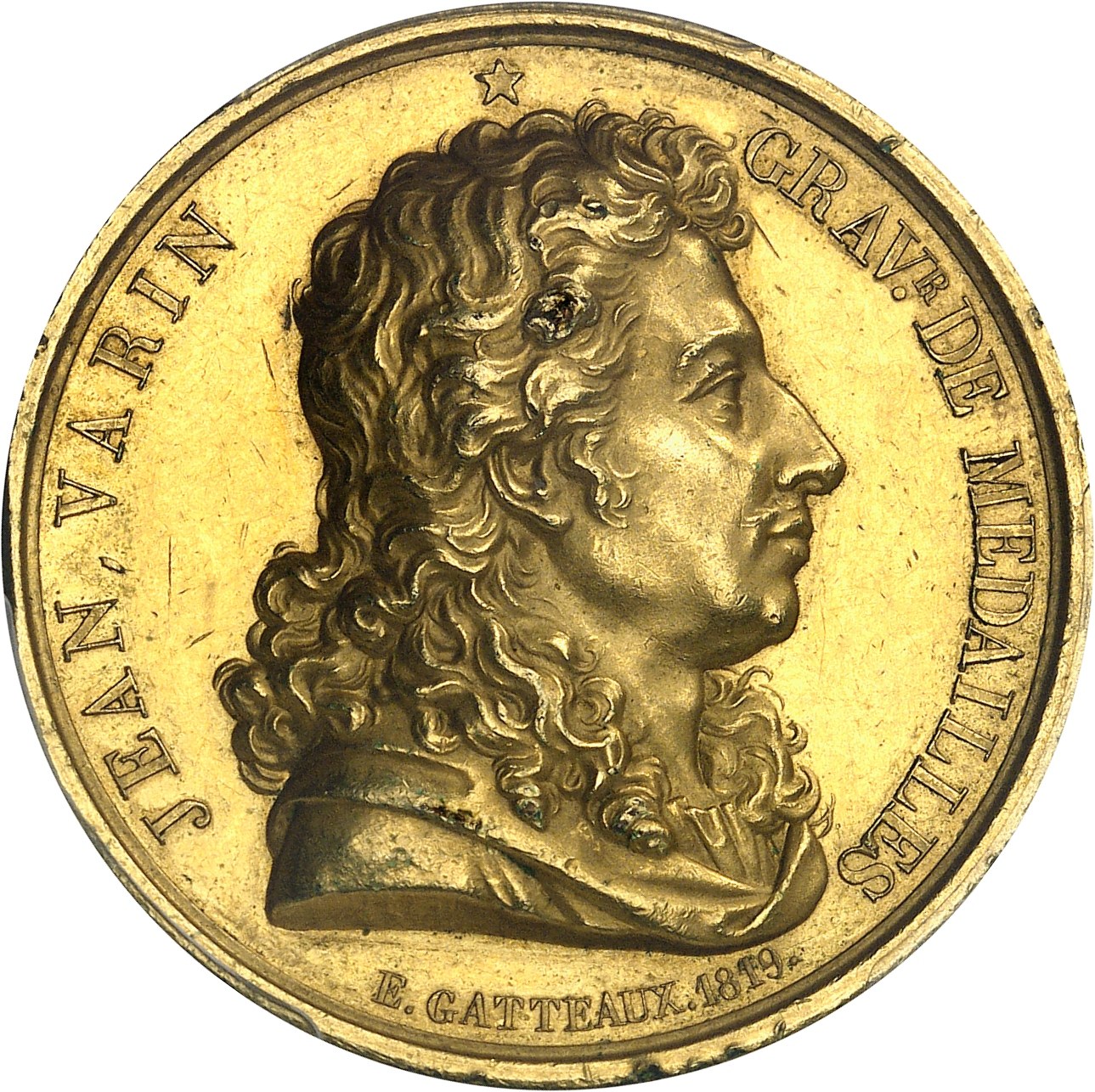 Jacques-Édouard Gatteaux (1788-1881) présente le portrait gravé de Jean Varin à l’Académie des Beaux-Arts le 17 août 1819 “pour être donné aux graveurs en médaille qui remporteront le grand prix”.