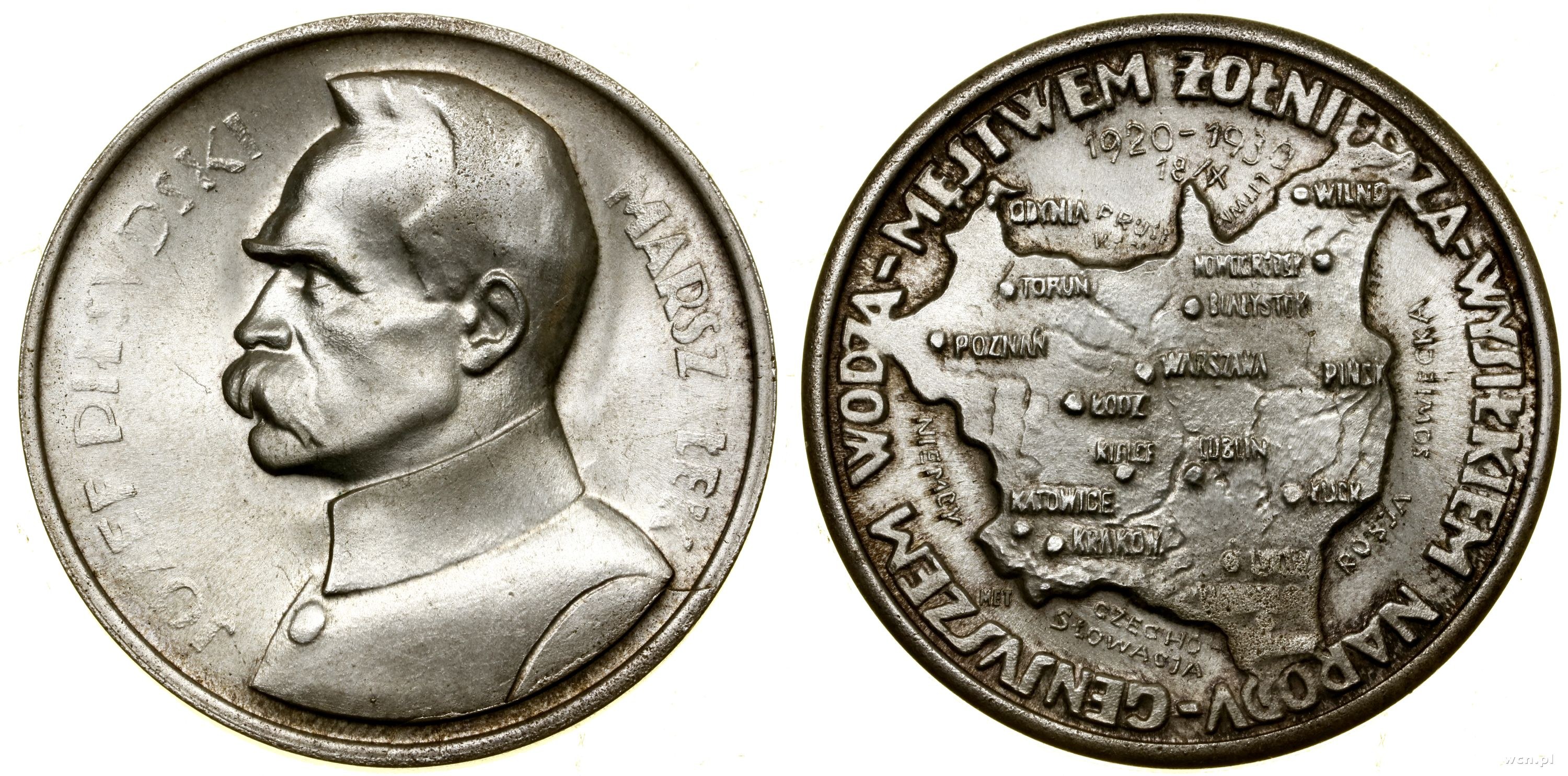 medale na 10. rocznicę wojny polsko-bolszewickiej (35.5 mm, 16.32 g) 1930 oraz upamiętniający 1. rocznicę śmierci Józefa Piłsudskiego (35.5 mm, 16.26 g)