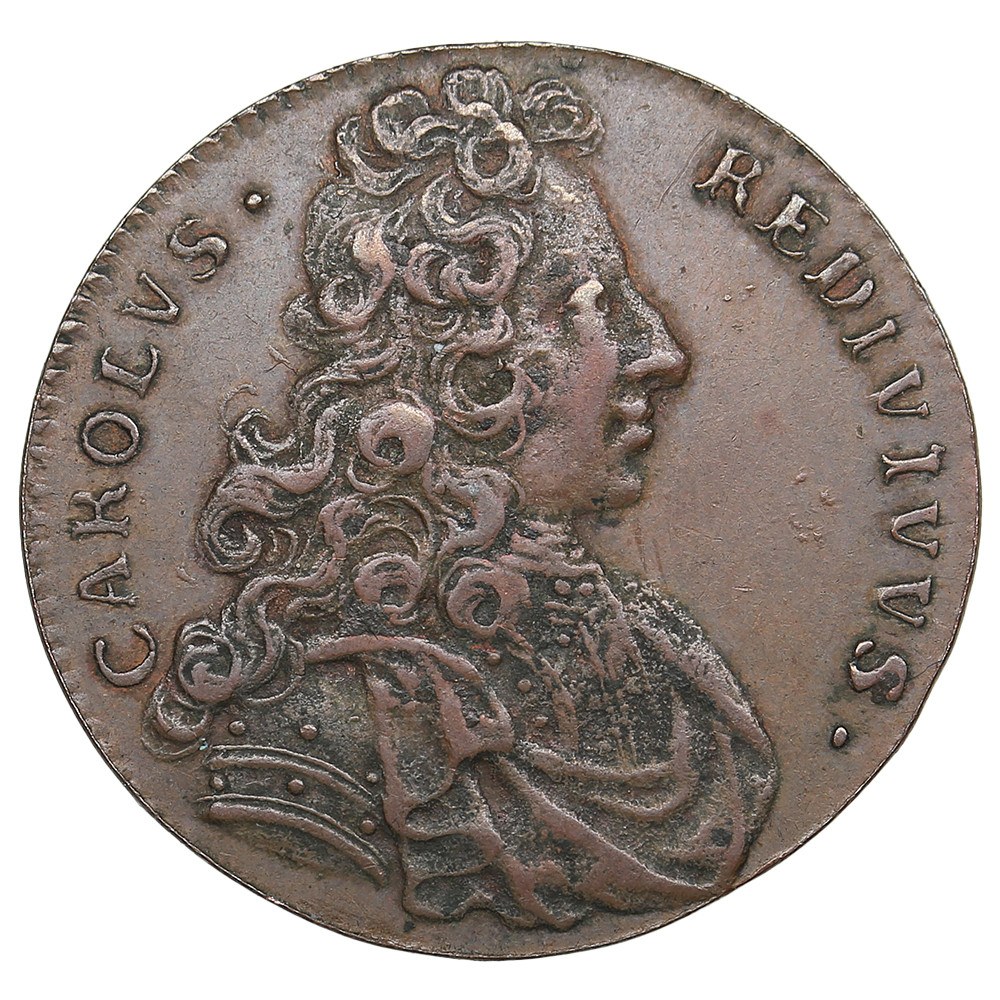 5.80g. 26mm. XF/VF+. Medalier: Attributed to Carl Gustaf Hartman. Delzanno (SKM) 26b (Br). 1000 SEK for XF and 2000 for AU, R. Delzanno reports that only 2 specimens have been documented as sold; Hildebrand 18. Obv.: Draped and cuirassed bust of Charles XII of Sweden right, wearing long curled periwig. Inscription around: CAROLVS· REDIVIVVS· (Charles, reborn). Rev.: Radiant phoenix rising from flames atop a globe. Inscription around: SIBIMET·SVPERSTES· (He survives for himself). In exergue: Suecis·redditus / d 14·dec·1697· (Returned to the Swedes / 14 December 1697). This medal commemorates the coronation of Karl XII, which took place in the great cathedral of Stockholm (Storkyrkan) on 14 December 1697. The imagery of the phoenix symbolizes renewal, continuity, and divine favor upon the young monarch. Likely engraved by Carl Gustaf Hartman, this piece forms part of the Karlsteen school’s early production.