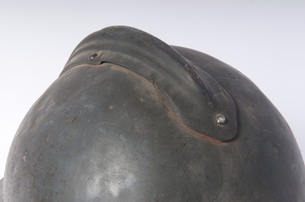 Model 1915 "Adrian", for men's field. Made in France and also supplied to the Italian army, it consists of a cap, visor, neck cover and vent cover crest. The helmet does not have a chin strap. State of preservation: minimal scuffs on the helmet shell and visor.