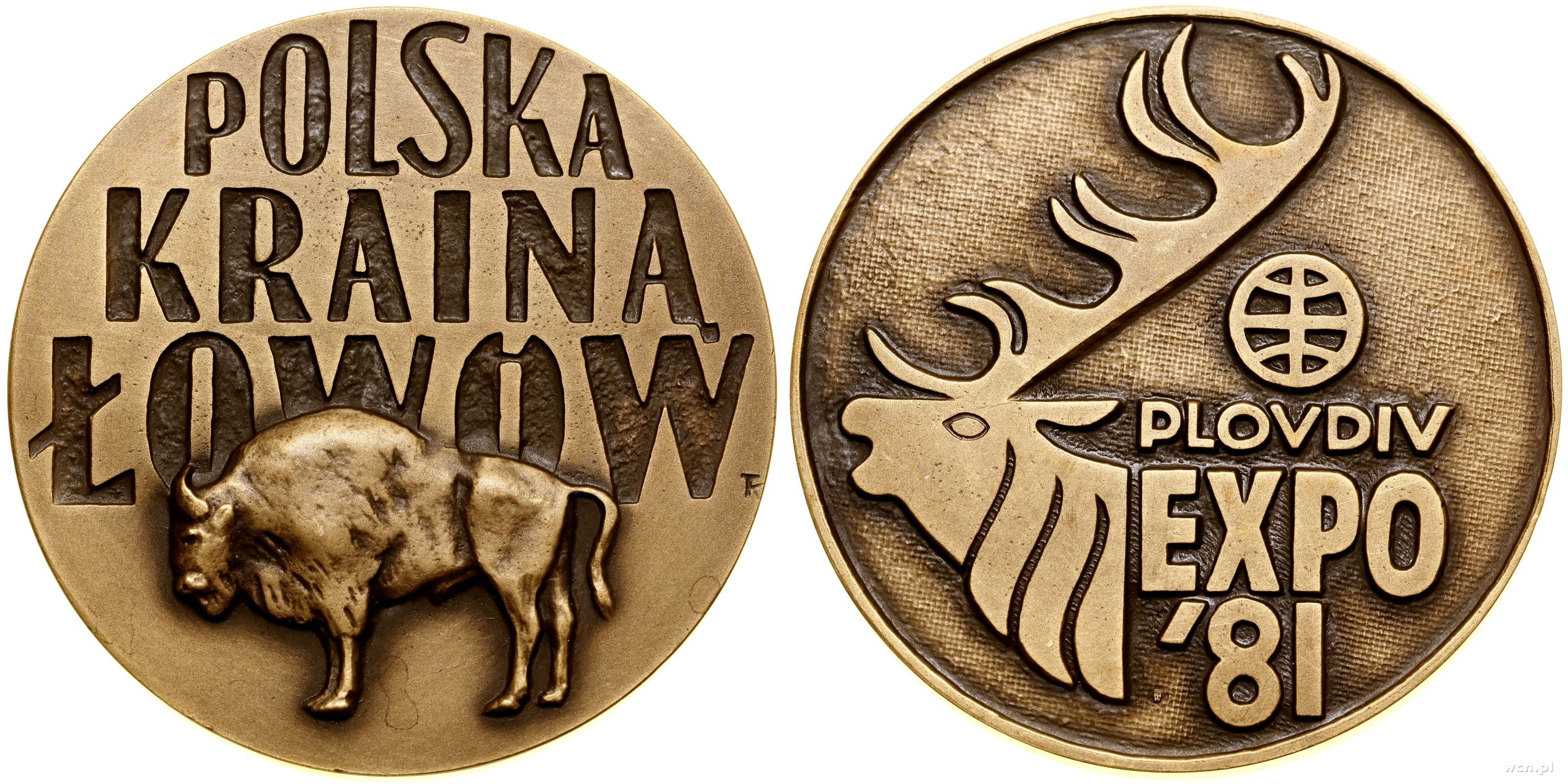 Aw: Żubr w lewo, wyżej POLSKA / KRAINĄ / ŁOWÓW, Rw: Głowa jelenia w lewo, z prawej PLOVDIV / EXPO / '81, projektował i wykonał Tomasz Konarski