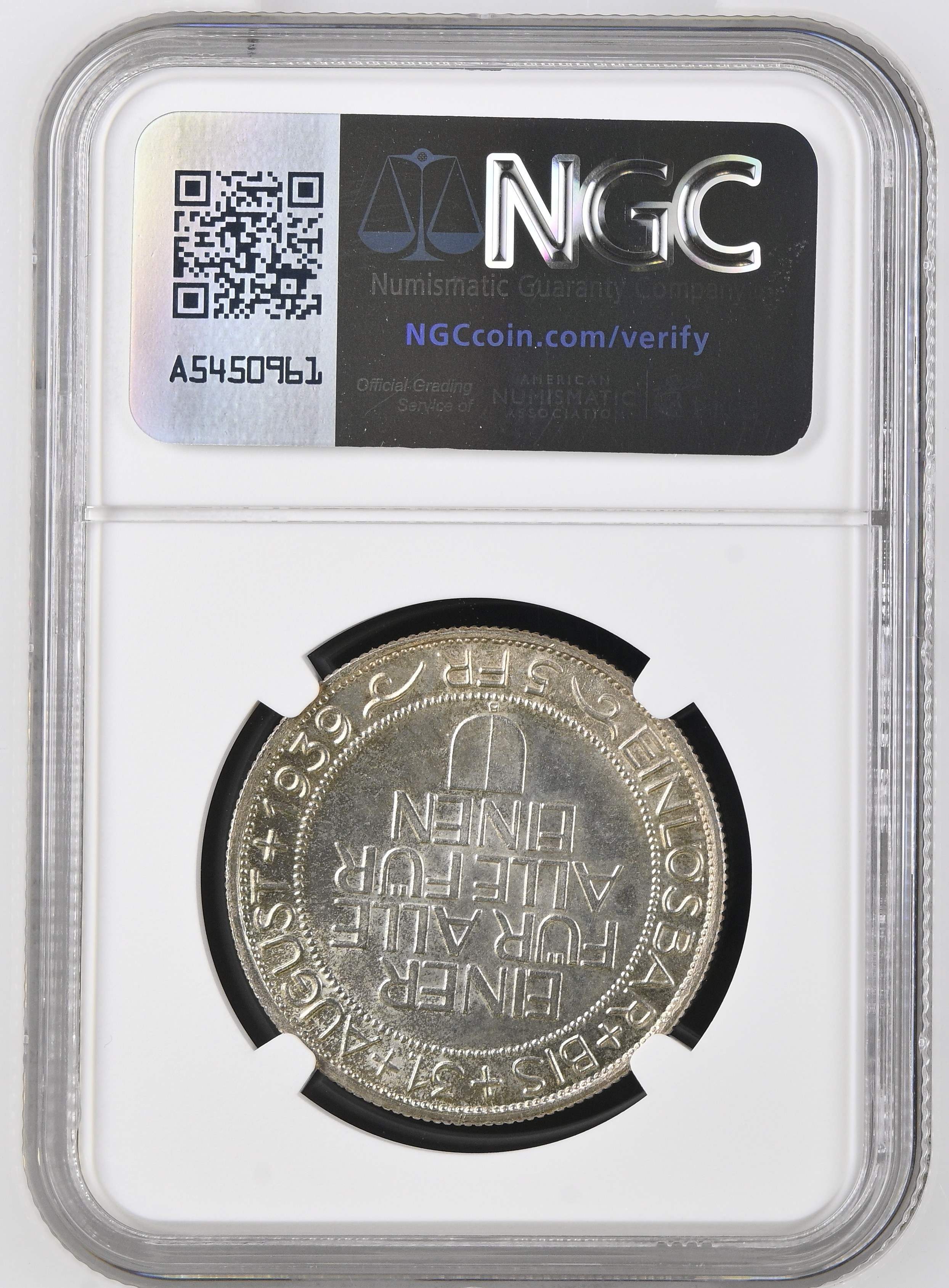Schweiz - Luzern - 5 Franken 1939, Schützentaler - Luzern, Eidgenössisches Schützenfest - NGC MS 64 - Switzerland, 5 Francs Swiss Shooting Thaler